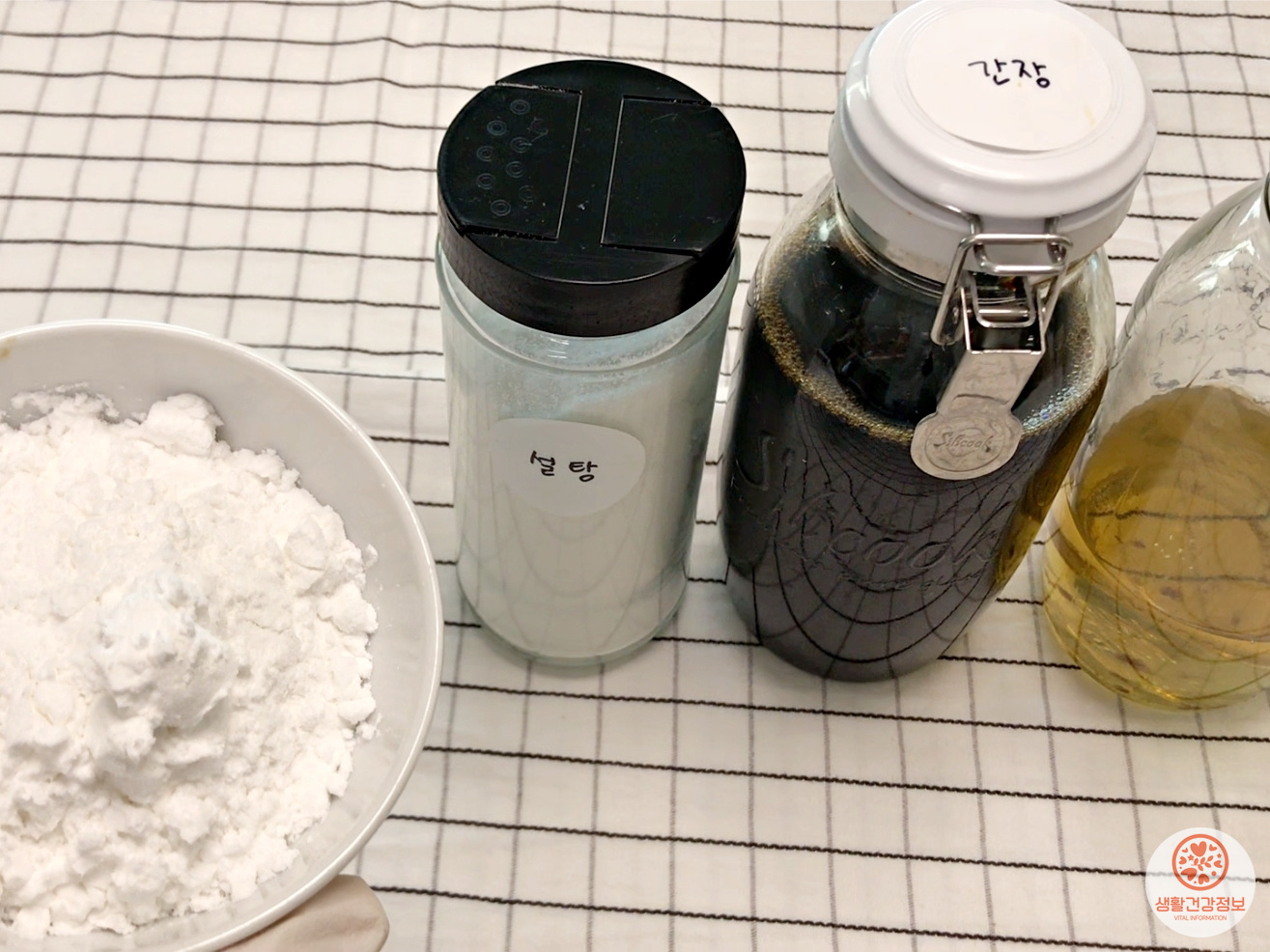 소스는 간장, 식초, 설탕, 전분가루 준비했어요.