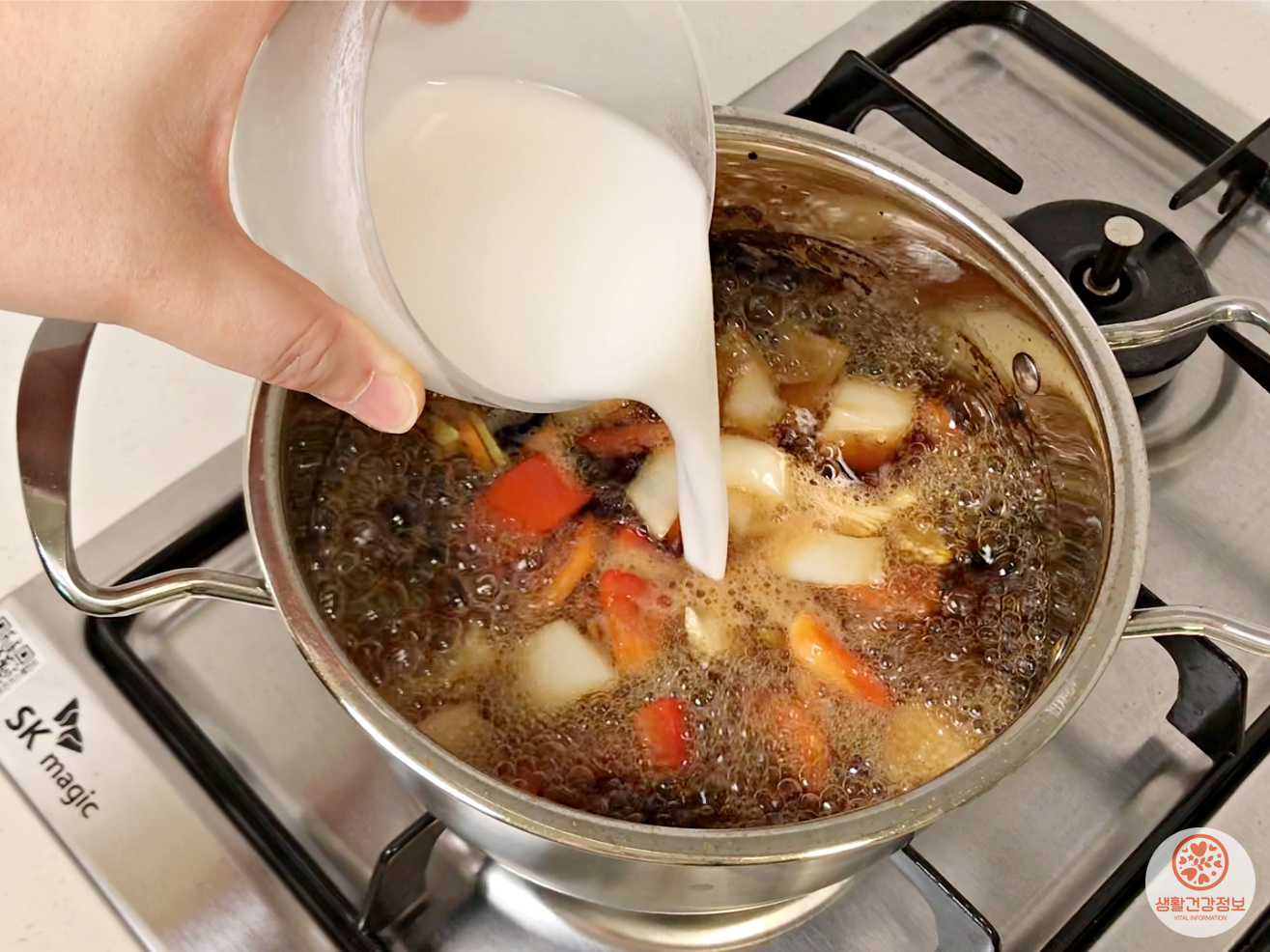 전분물을 조금씩 나눠서 부으며 저어주시고요.