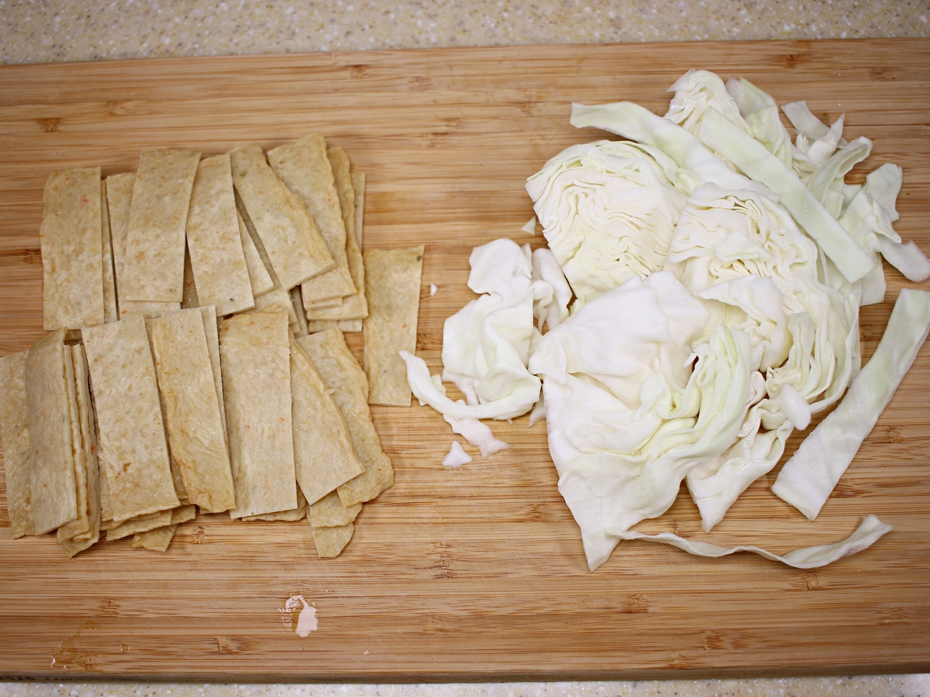 그사이에 어묵이랑 양배추를 썰어주세요.