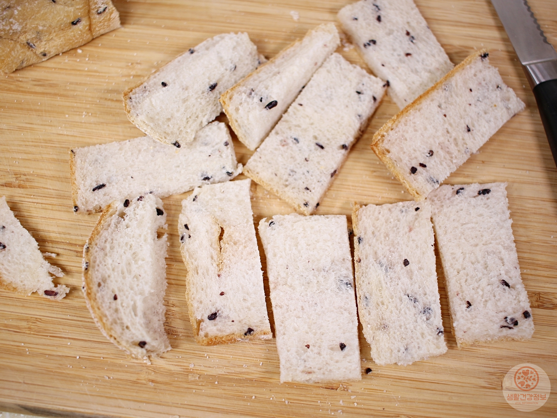 자투리 식빵도 먹기 좋게 잘라주세요.