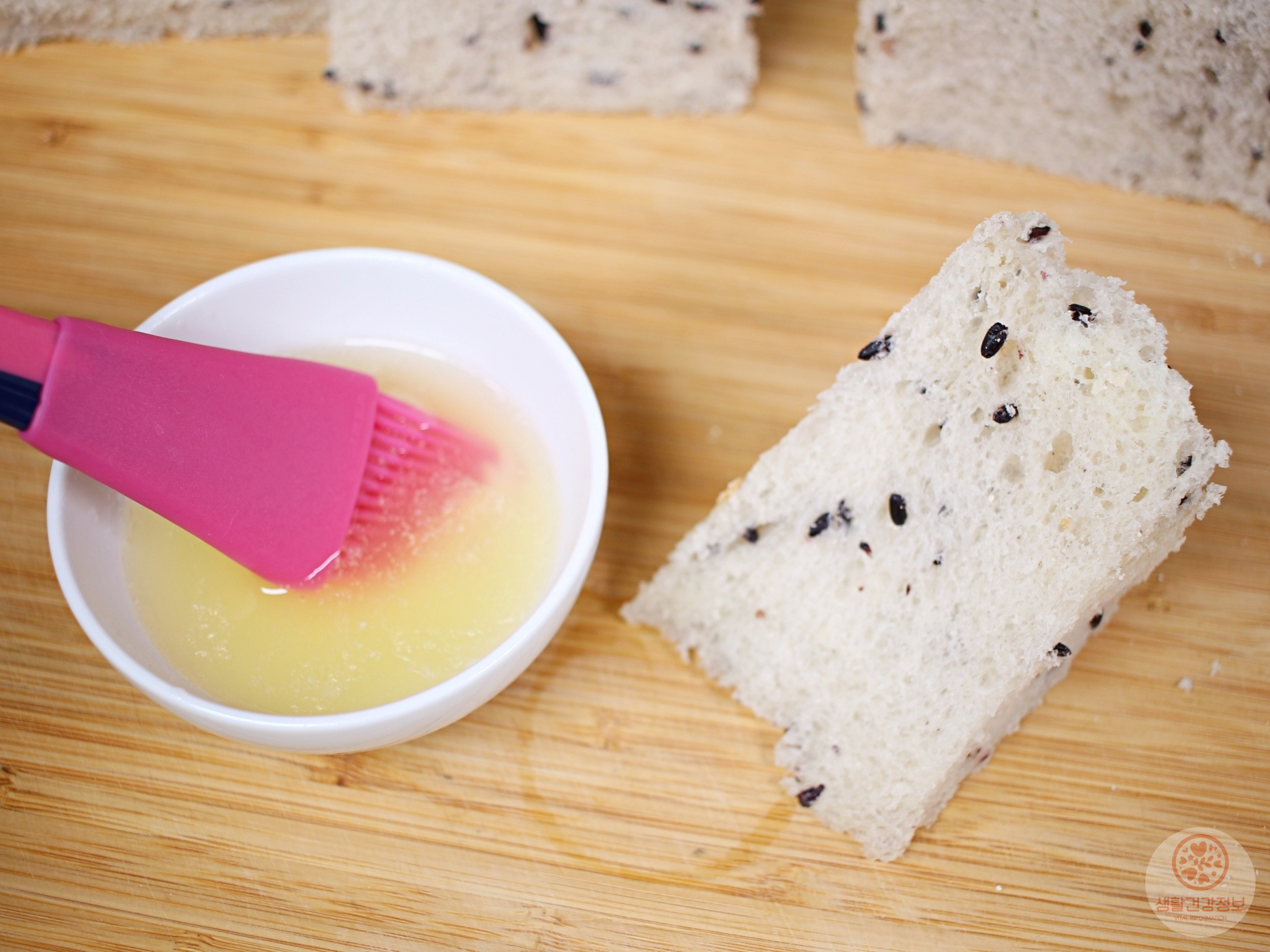 버터를 녹여서 식빵 겉면에 골고루 바르고요.