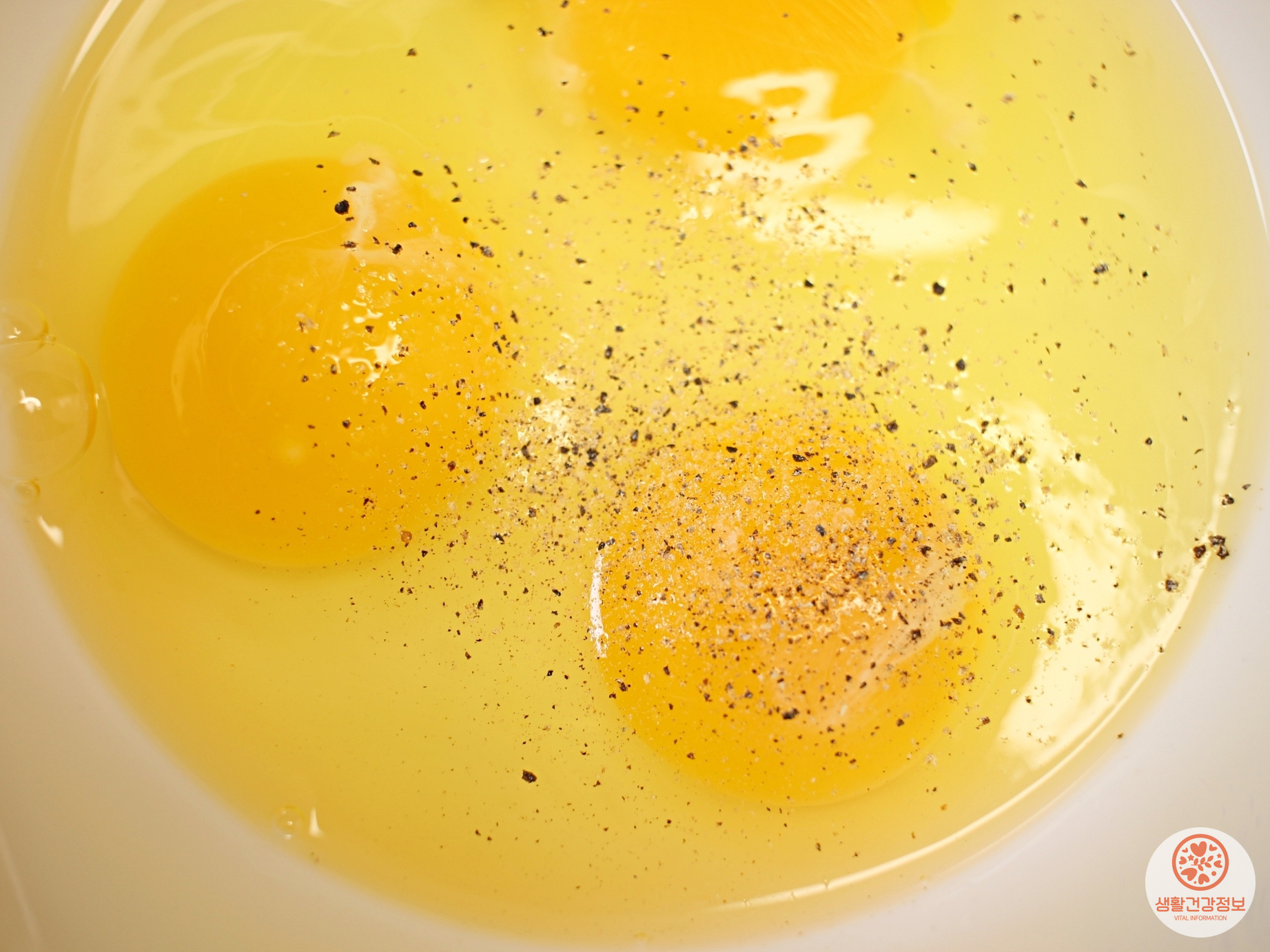 계란을 깨서 담고 소금 두꼬집, 후추 톡톡 뿌려주세요.