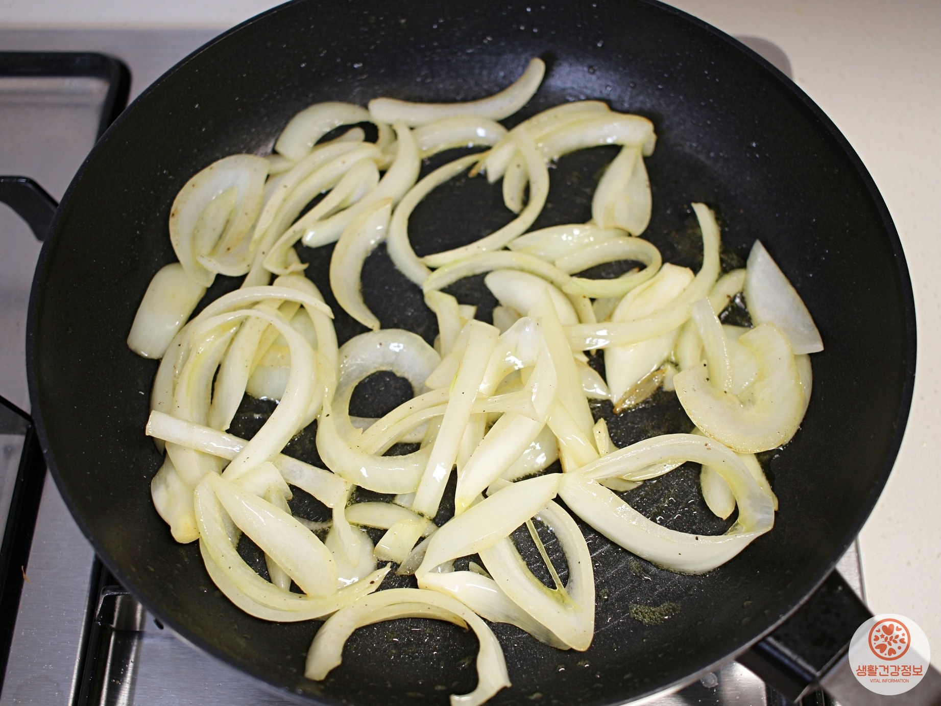 버터가 녹으면 양파를 넣어서 볶아주세요.