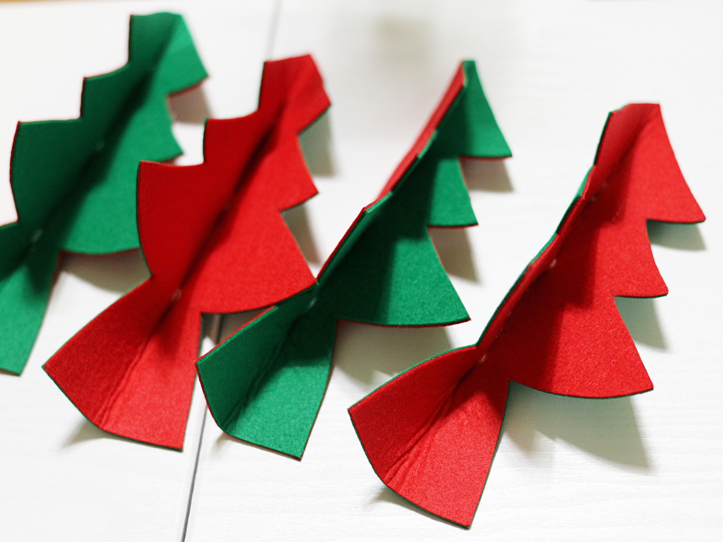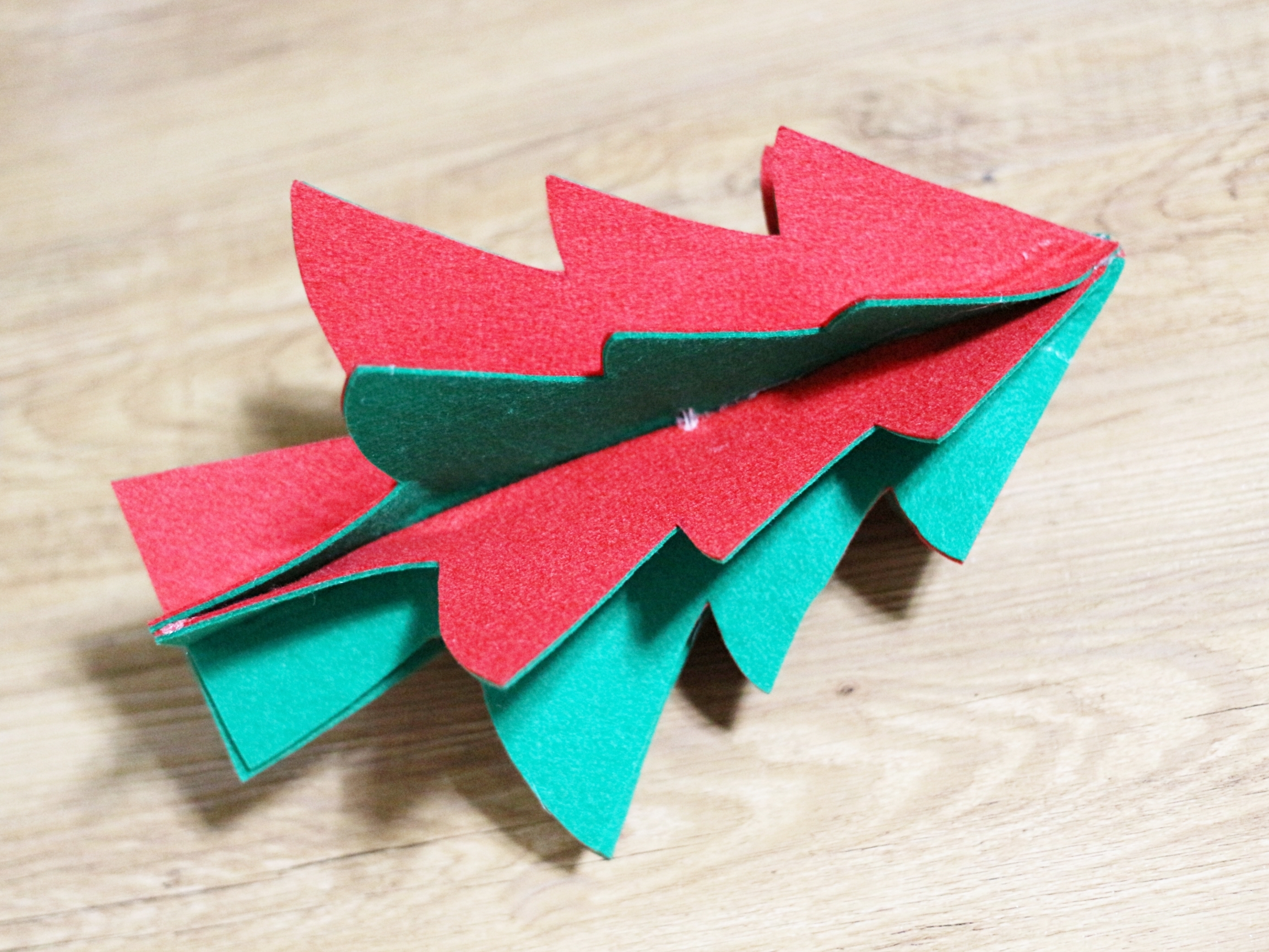 양면으로 색을 입힌 트리를 다시 세로로 반 접어서