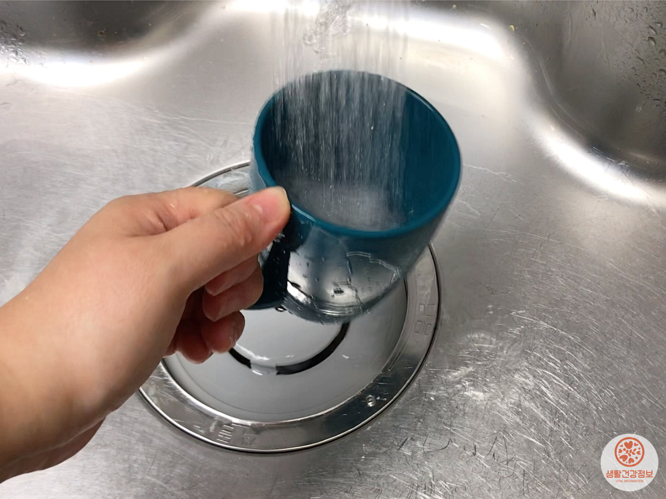 주방세제를 푼 물에 10분동안 컵을 담갔다가