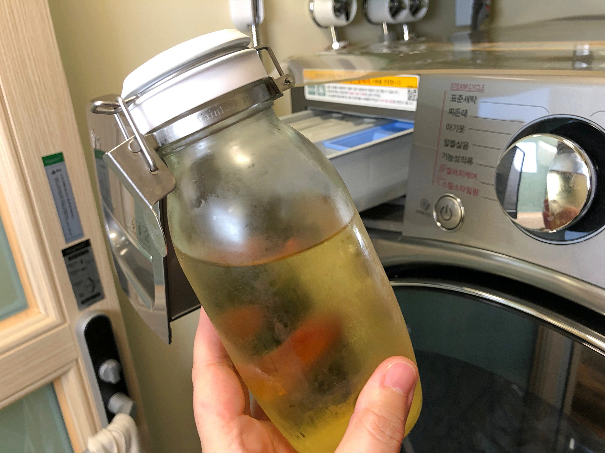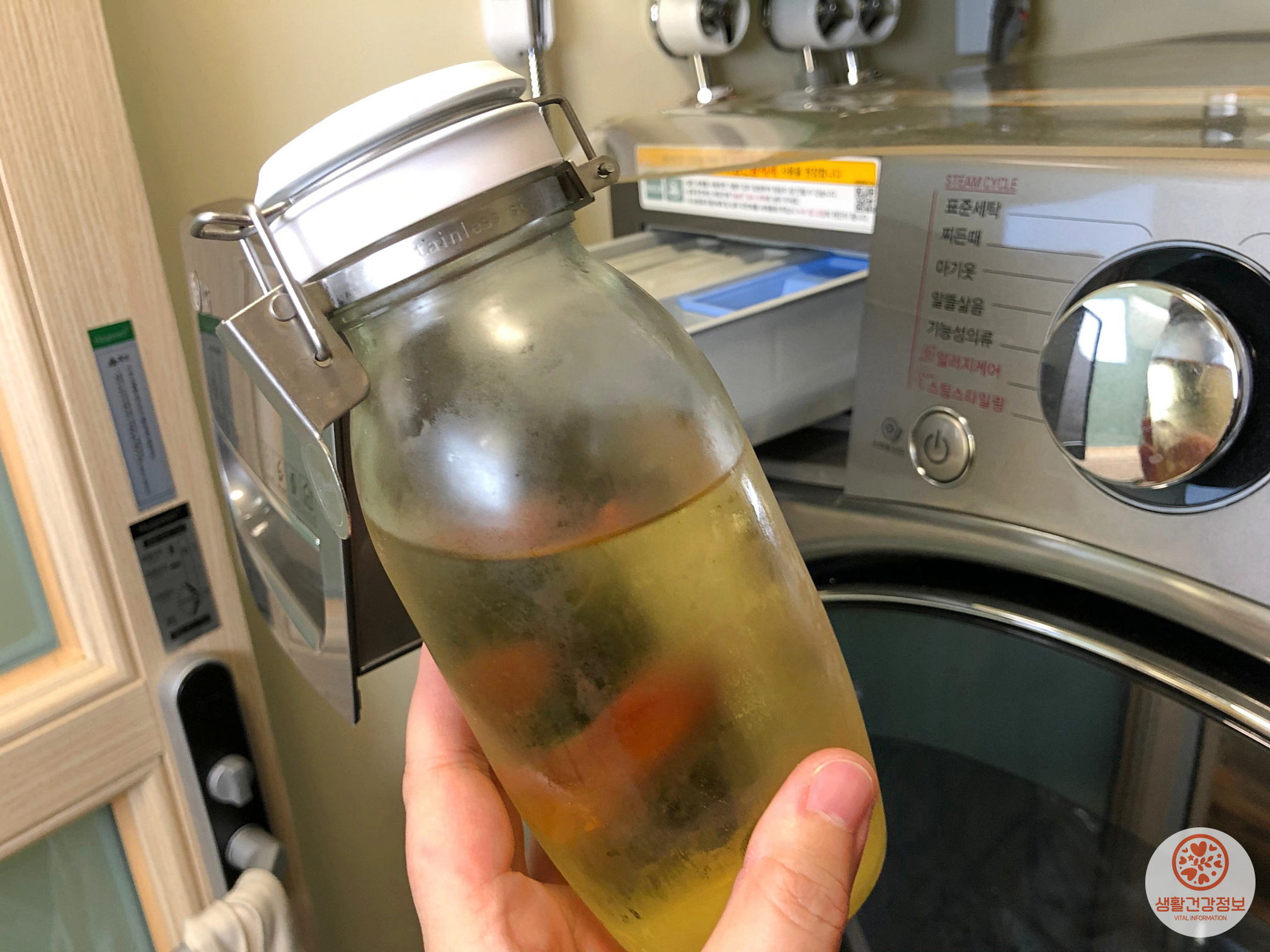 주방세제를 푼 물에 10분동안 컵을 담갔다가