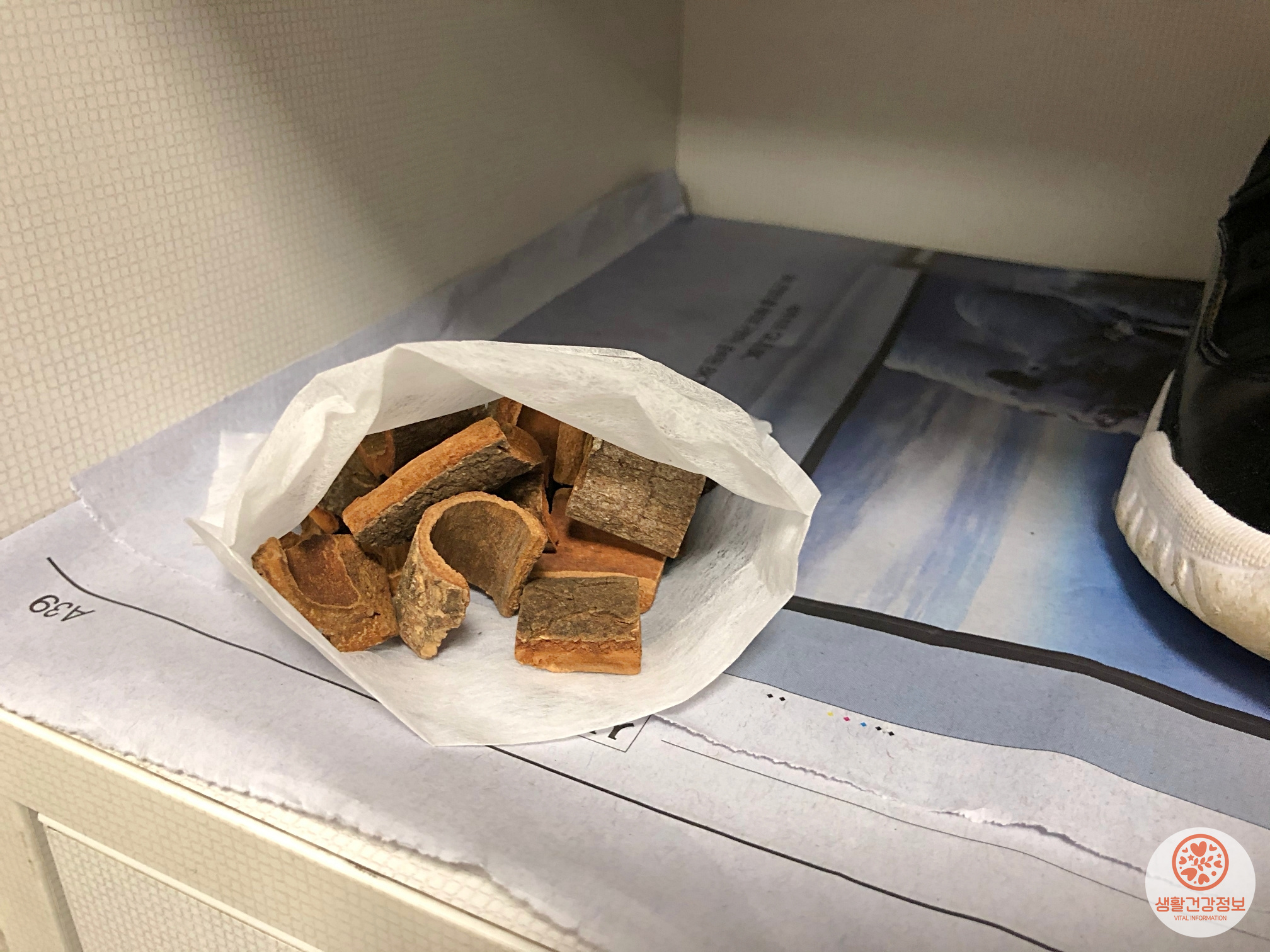 신발장에 신문지를 깔아두거나 통계피를 넣어서