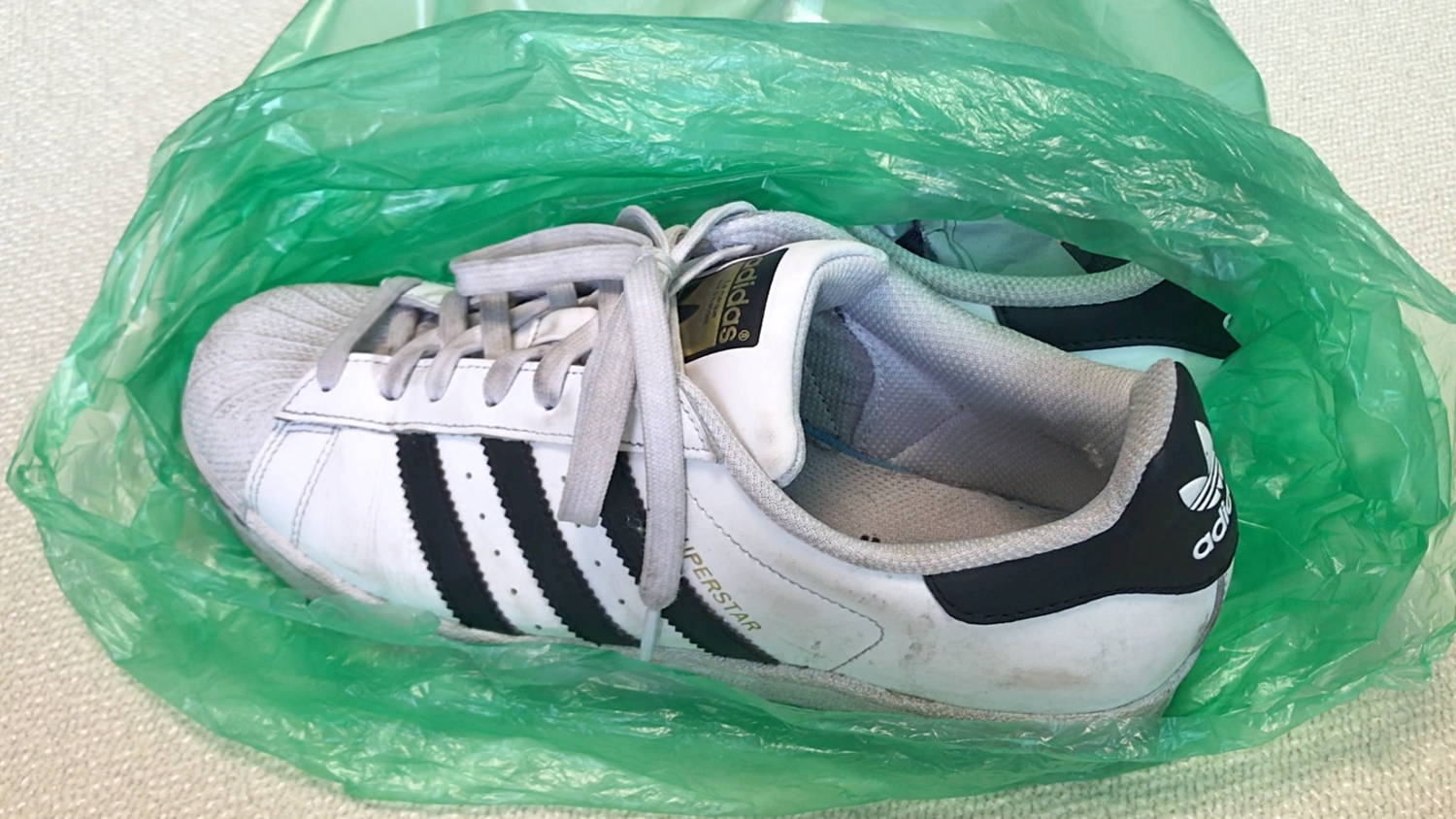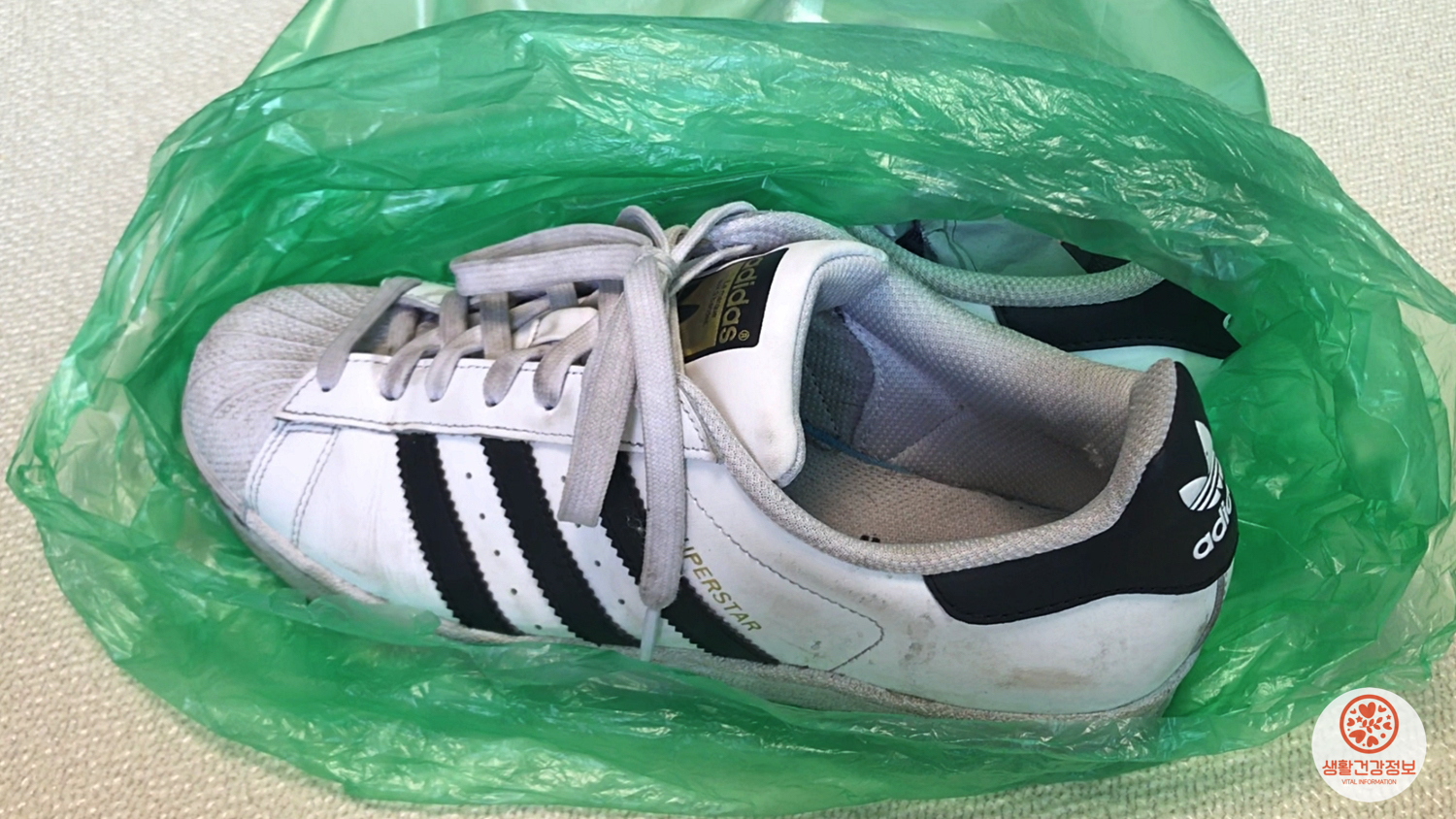 비닐봉지에 운동화를 넣고