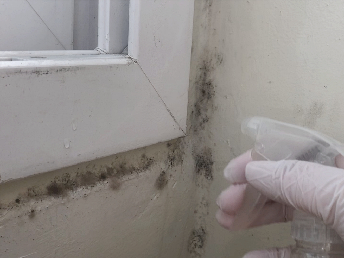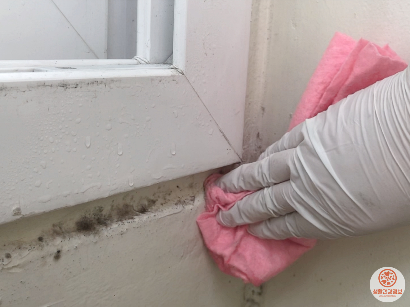 곰팡이 핀 벽을 마른 걸레로 닦아서