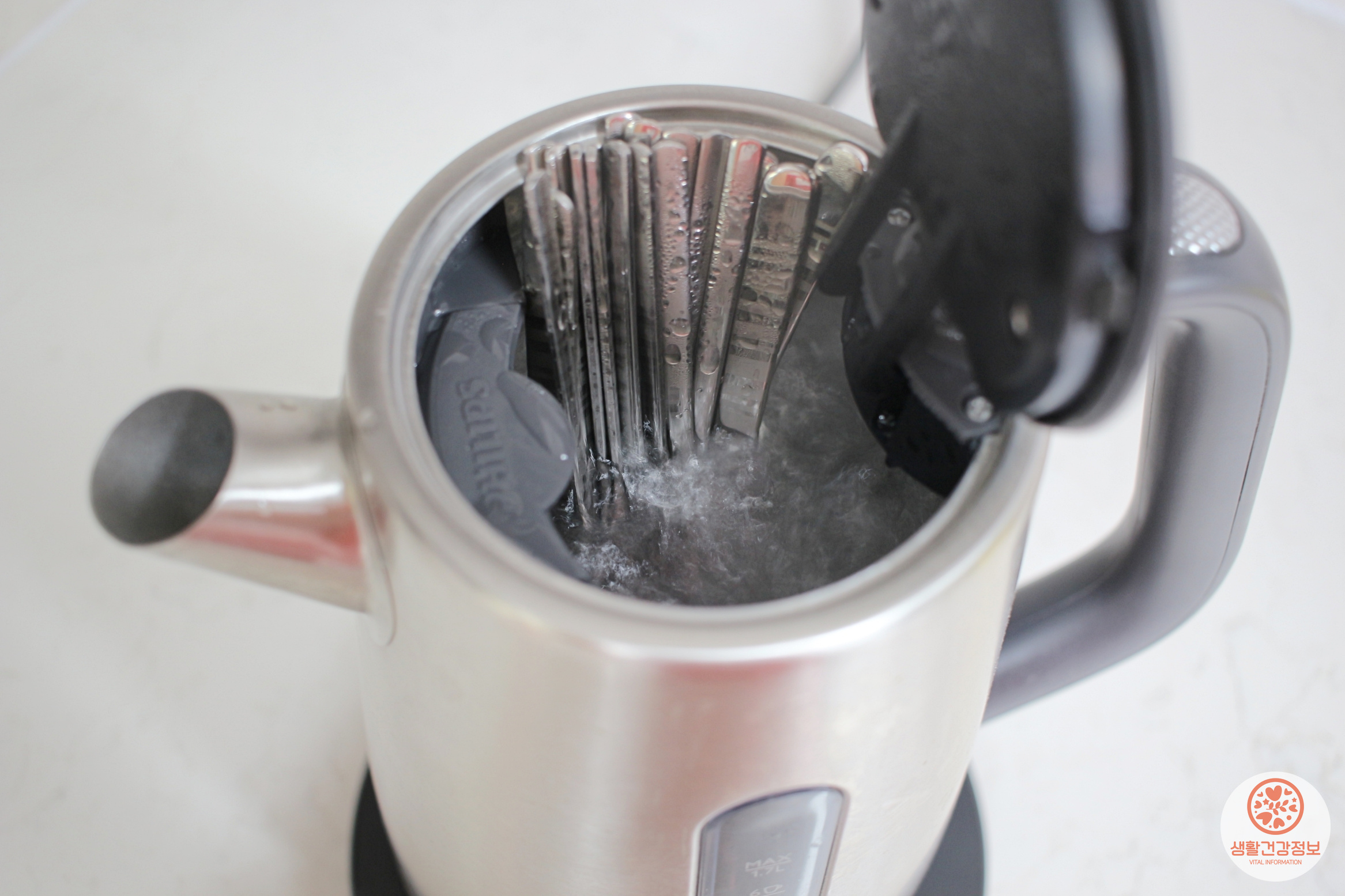 물이 끓으면 숟가락, 젓가락이 담긴 상태로