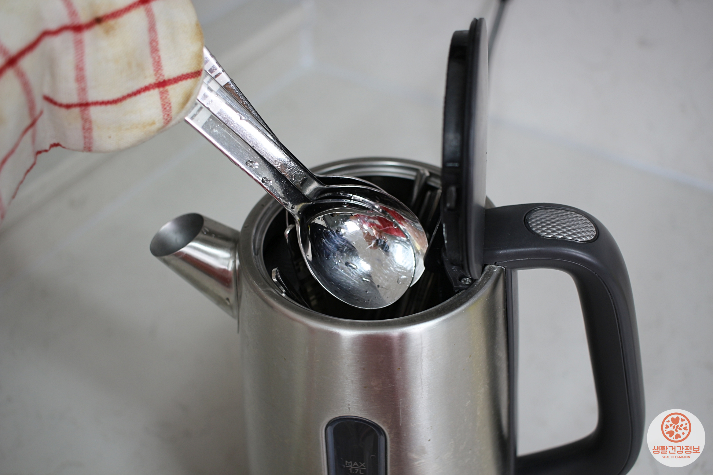 전기포트에 숟가락을 넣어보세요.