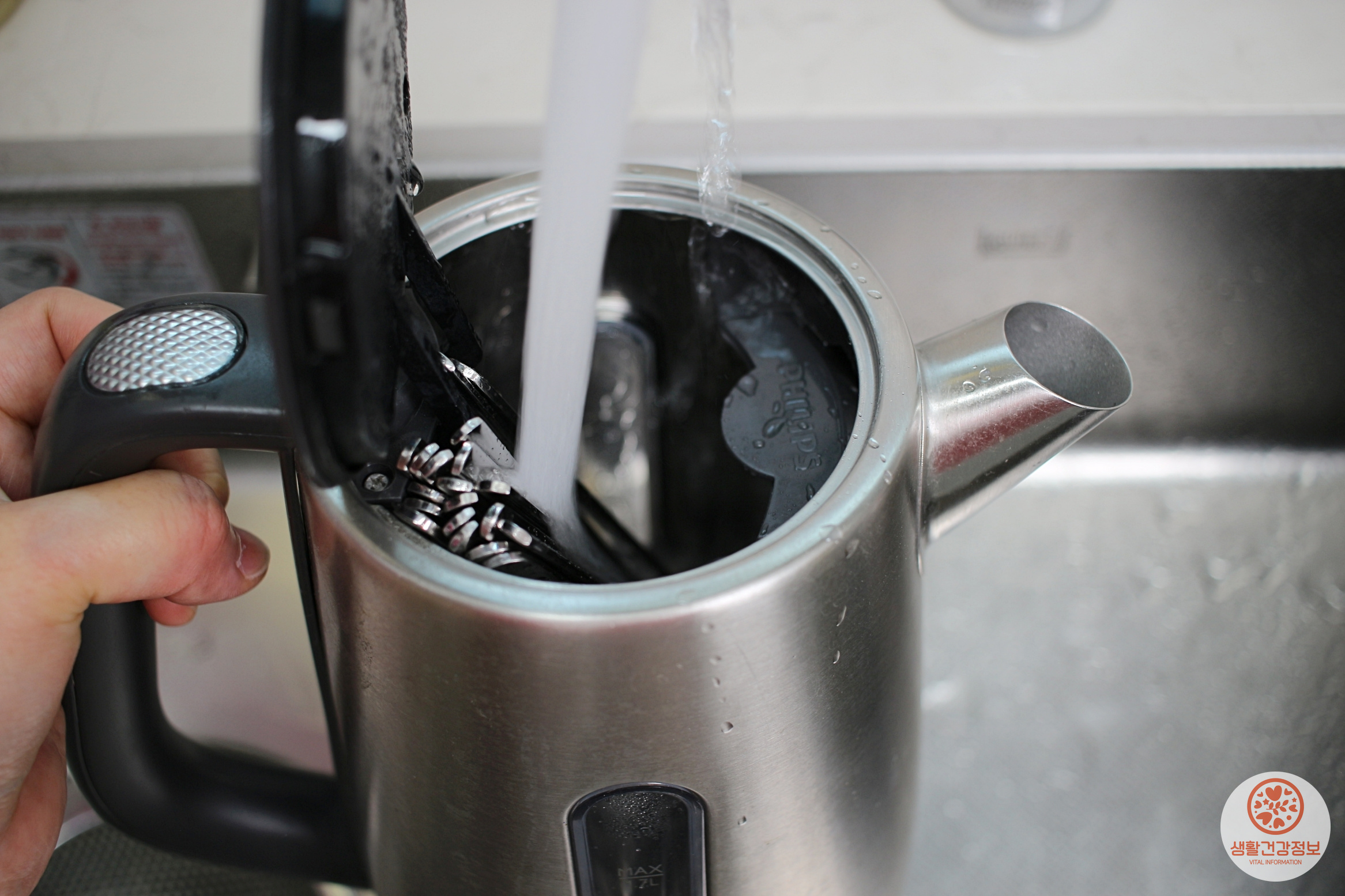 이렇게 전기포트부터 1차로 세척을 하고요.