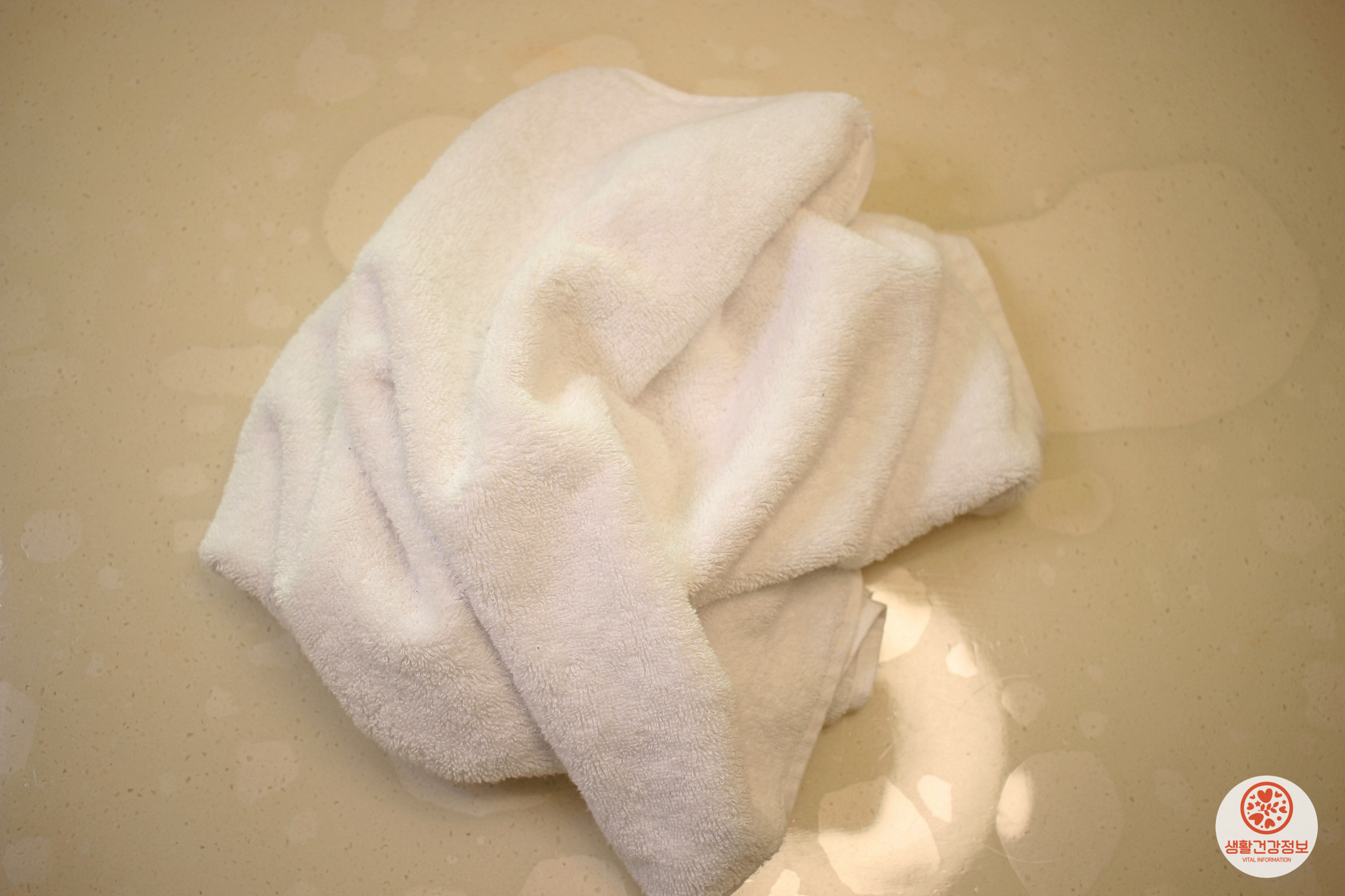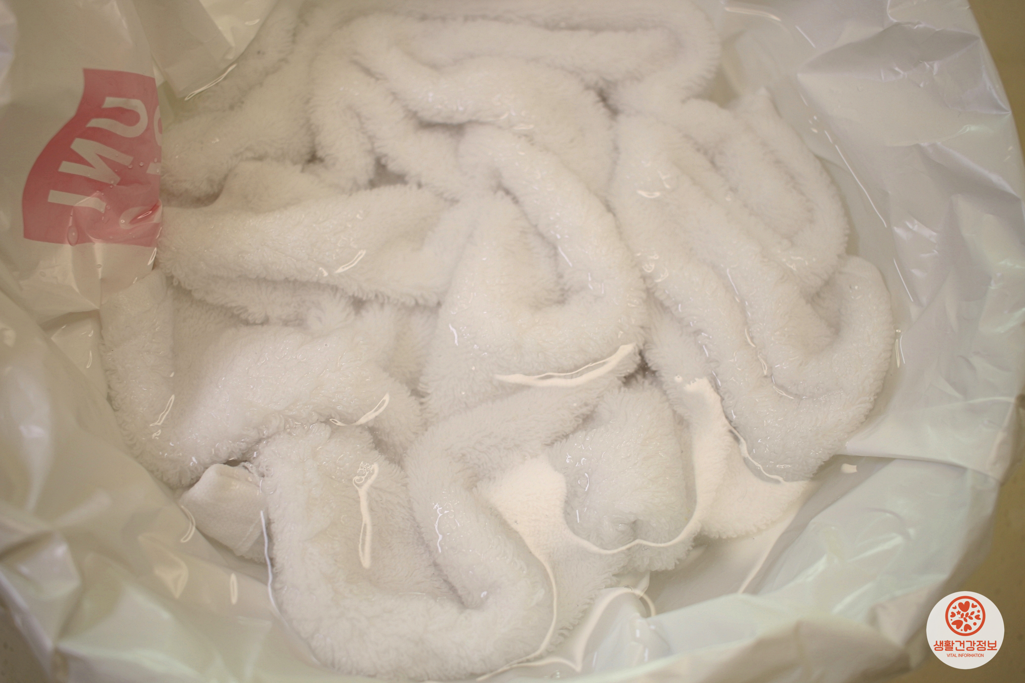 2. 쉰내 나는 수건을 넣고 잘 흡수시켜준다.