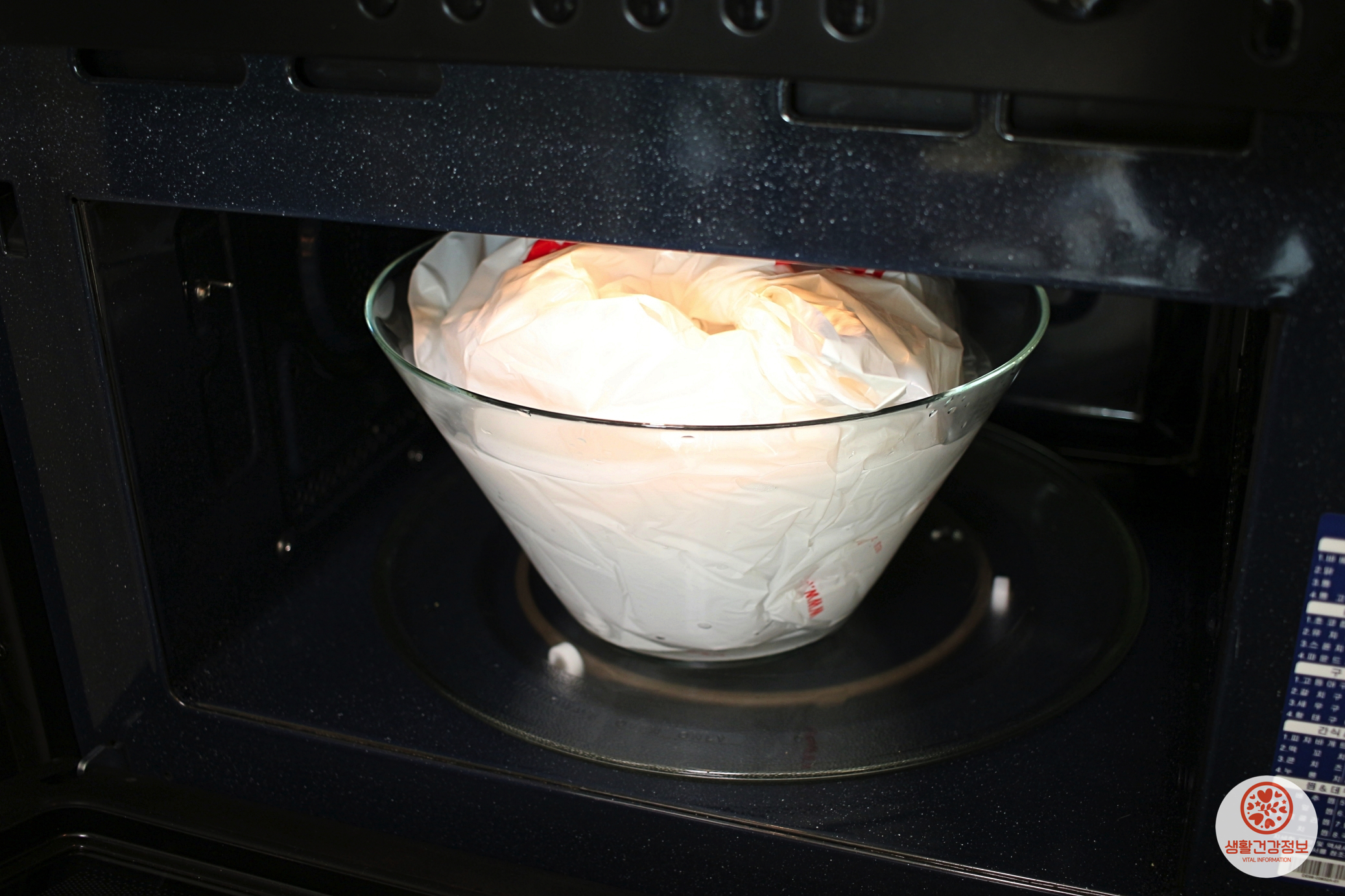 4. 전자레인지 사용 가능한 용기에 넣고 돌린다.