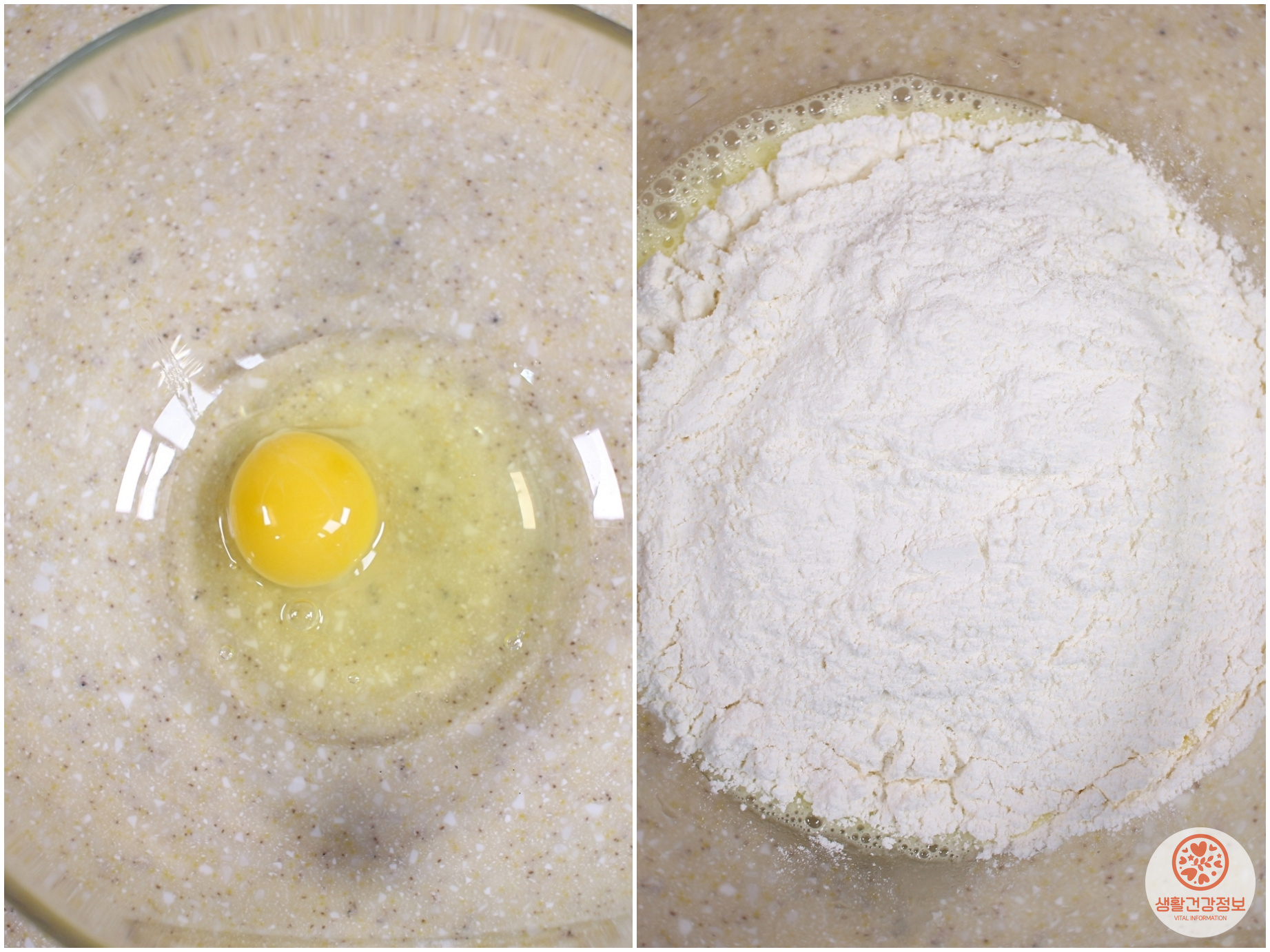 꿀 2큰술 넣어서 골고루 섞으면 기본 반죽 끝.