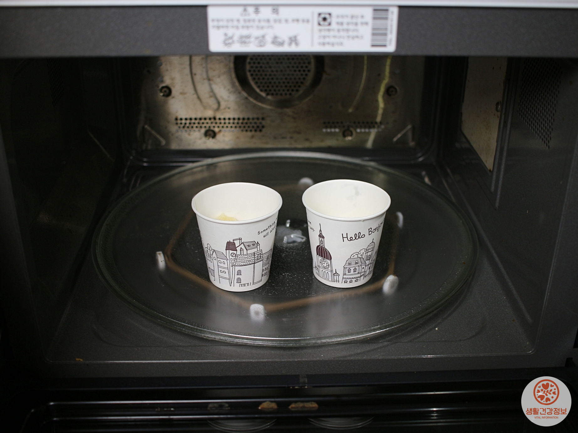 완성된 반죽을 종이컵에 반만 채워주세요.