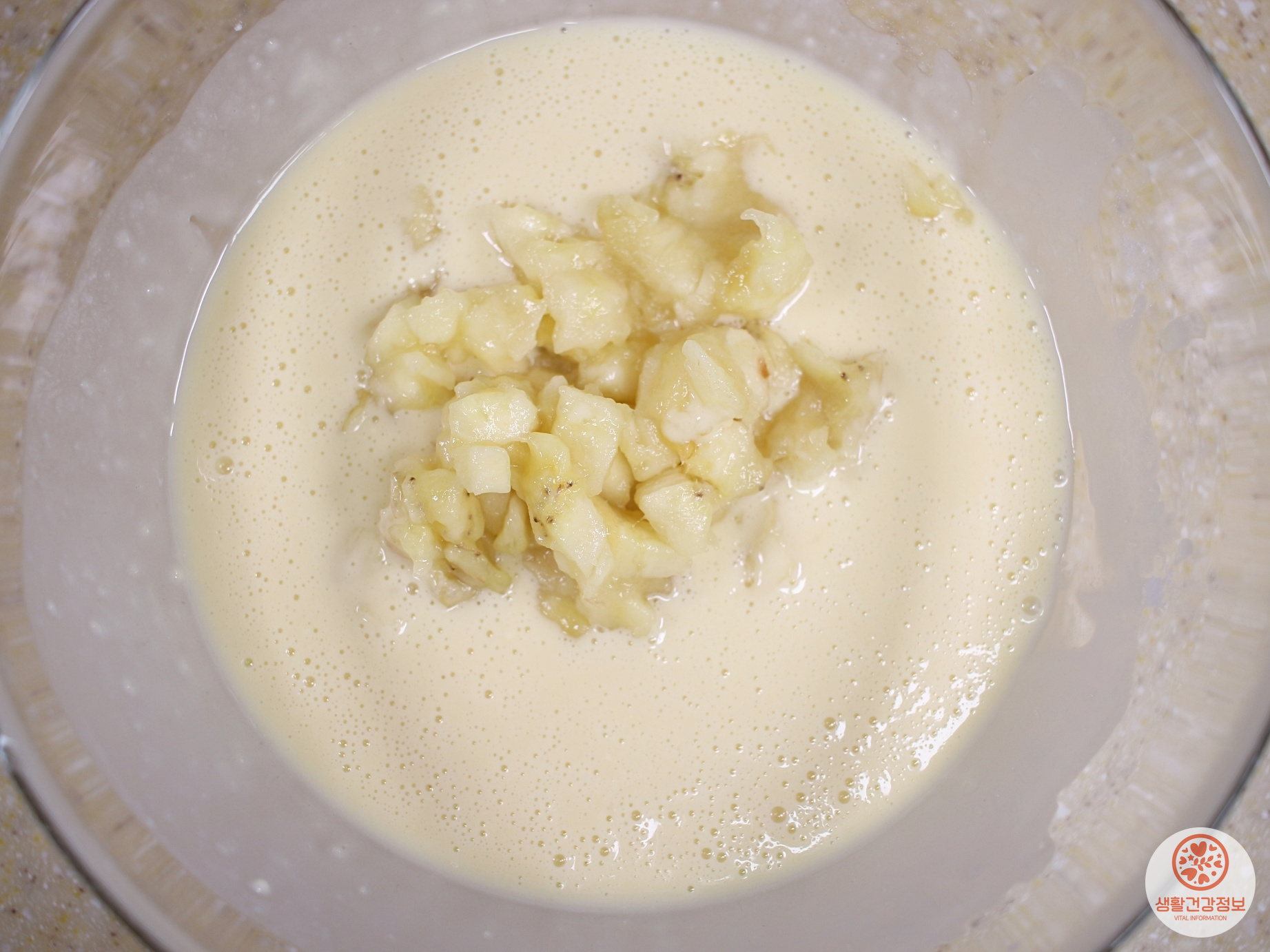 여기에 바나나를 잘게 썰어서 넣어주세요.