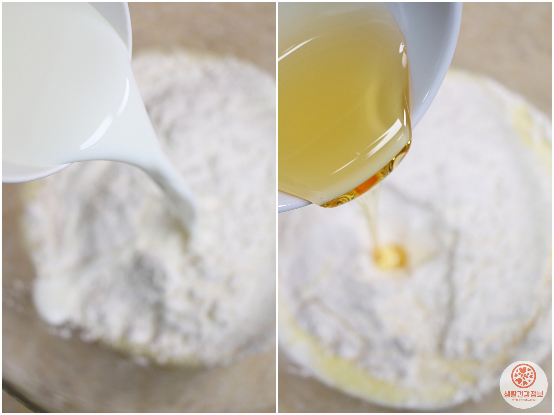 꿀 2큰술 넣어서 골고루 섞으면 기본 반죽 끝.