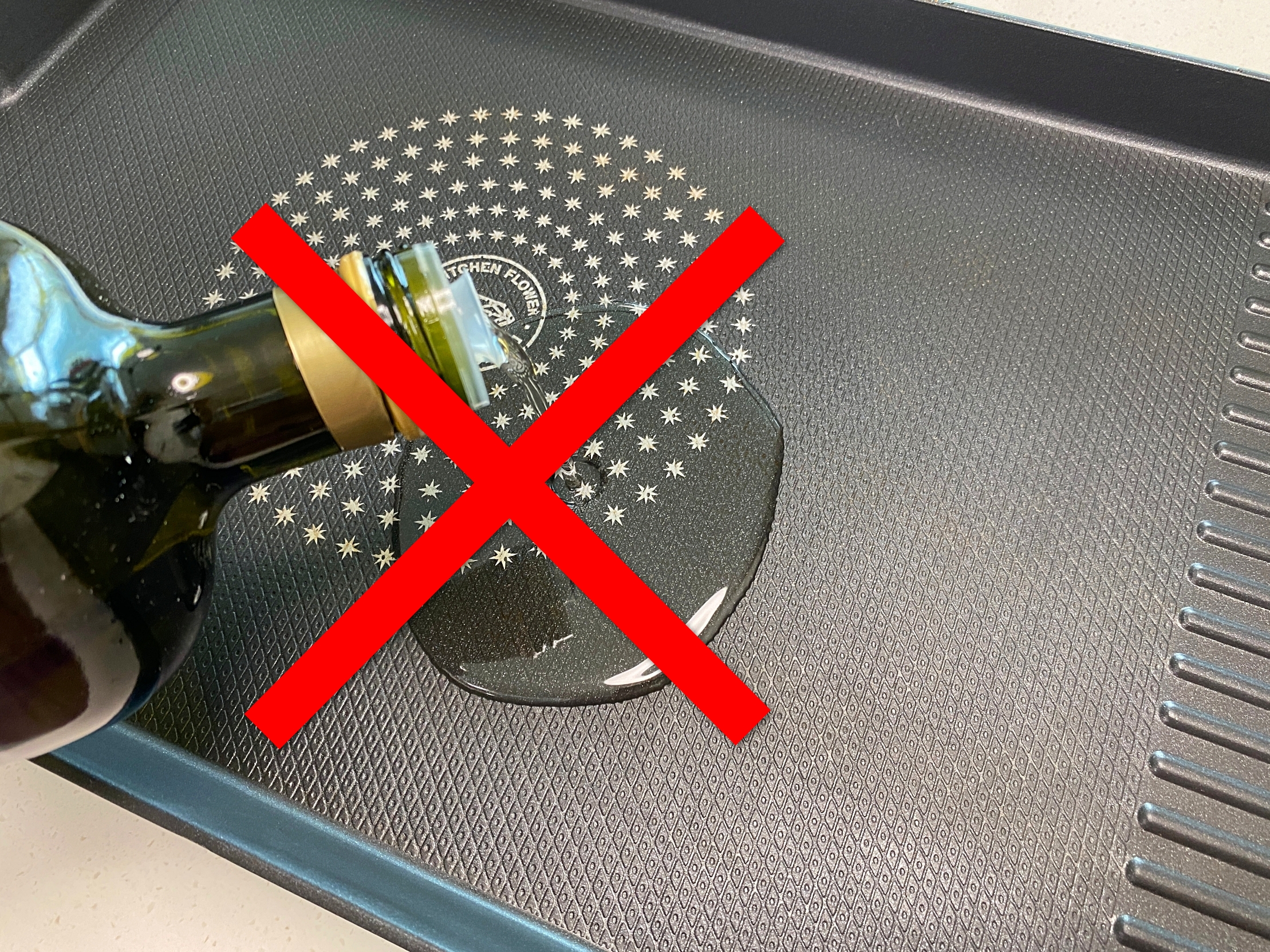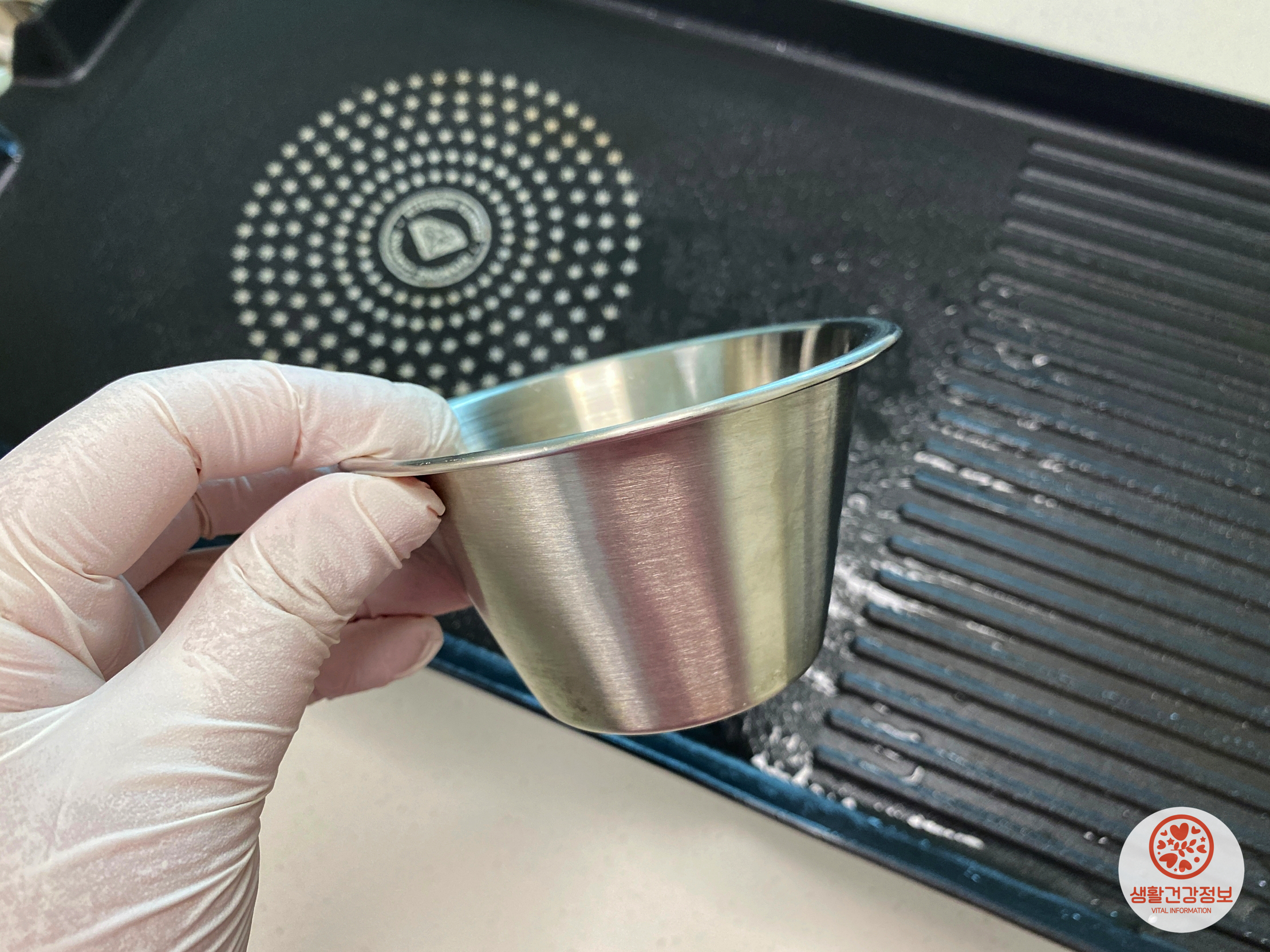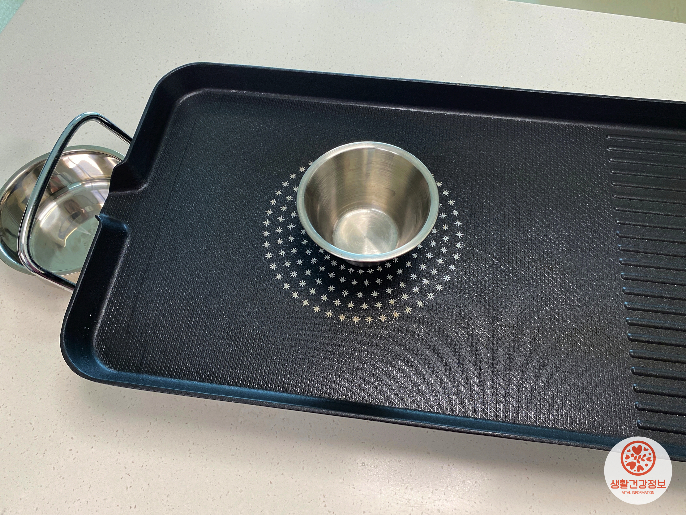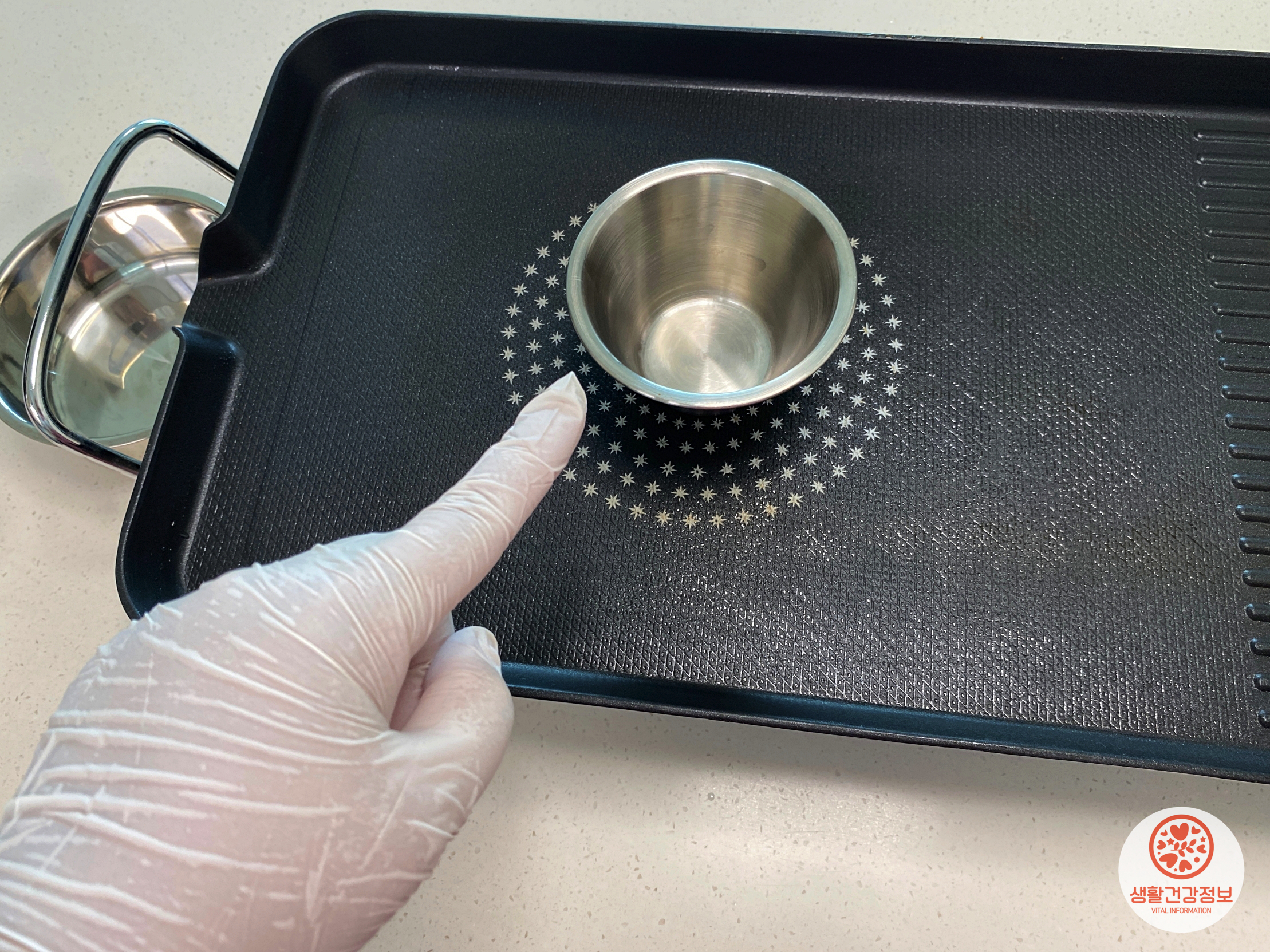 프라이팬 위에 기름종지를 올려보세요.