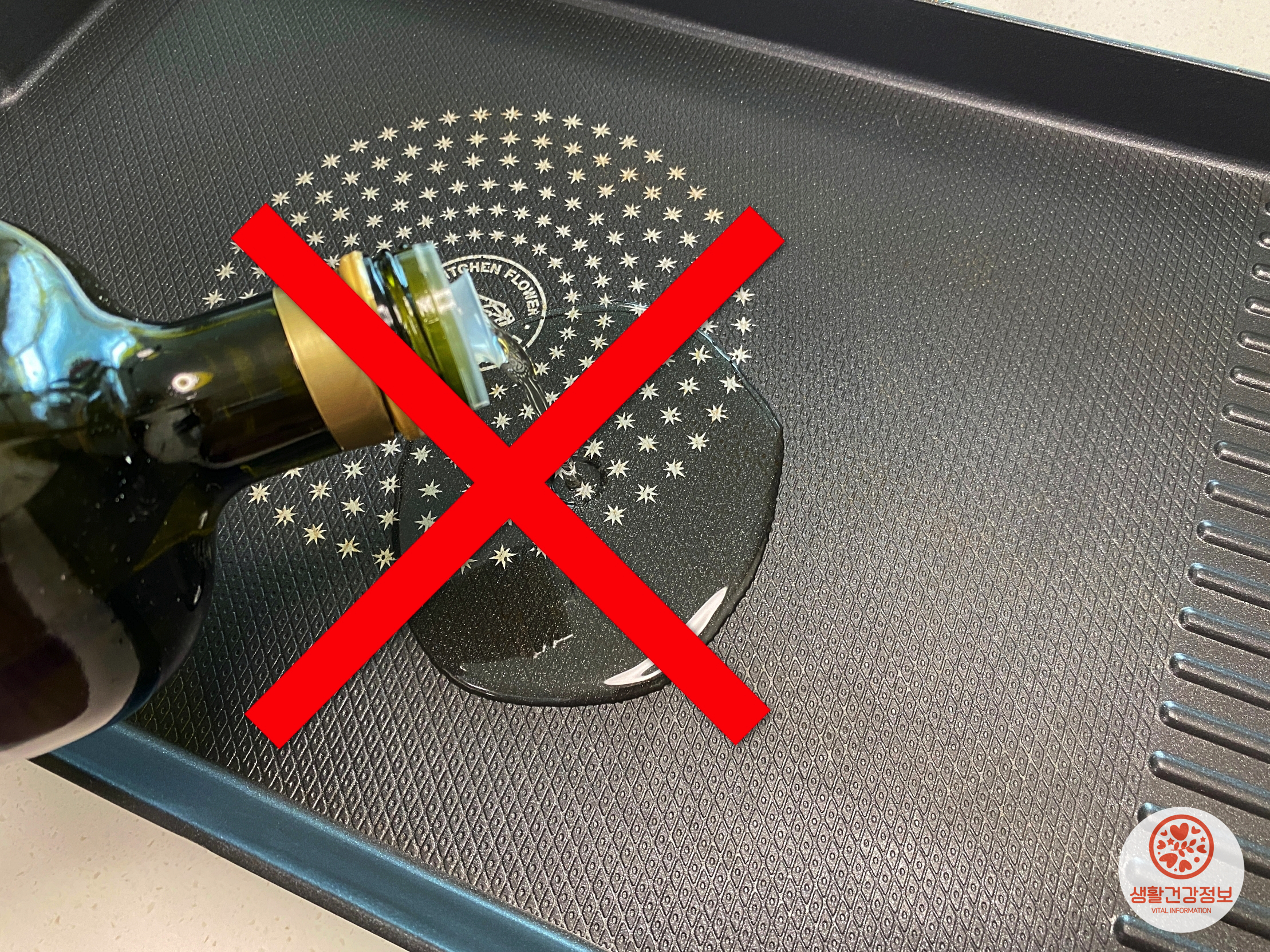 프라이팬에 기름을 그냥 부으면 안돼요.