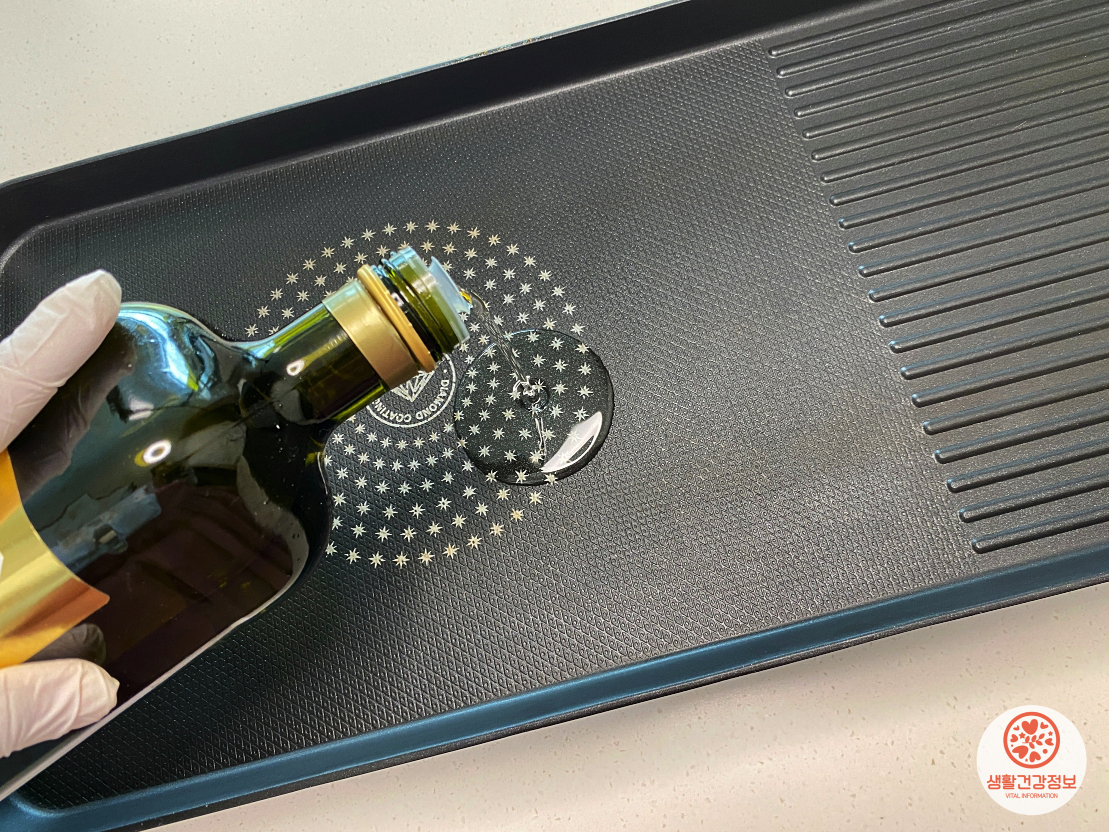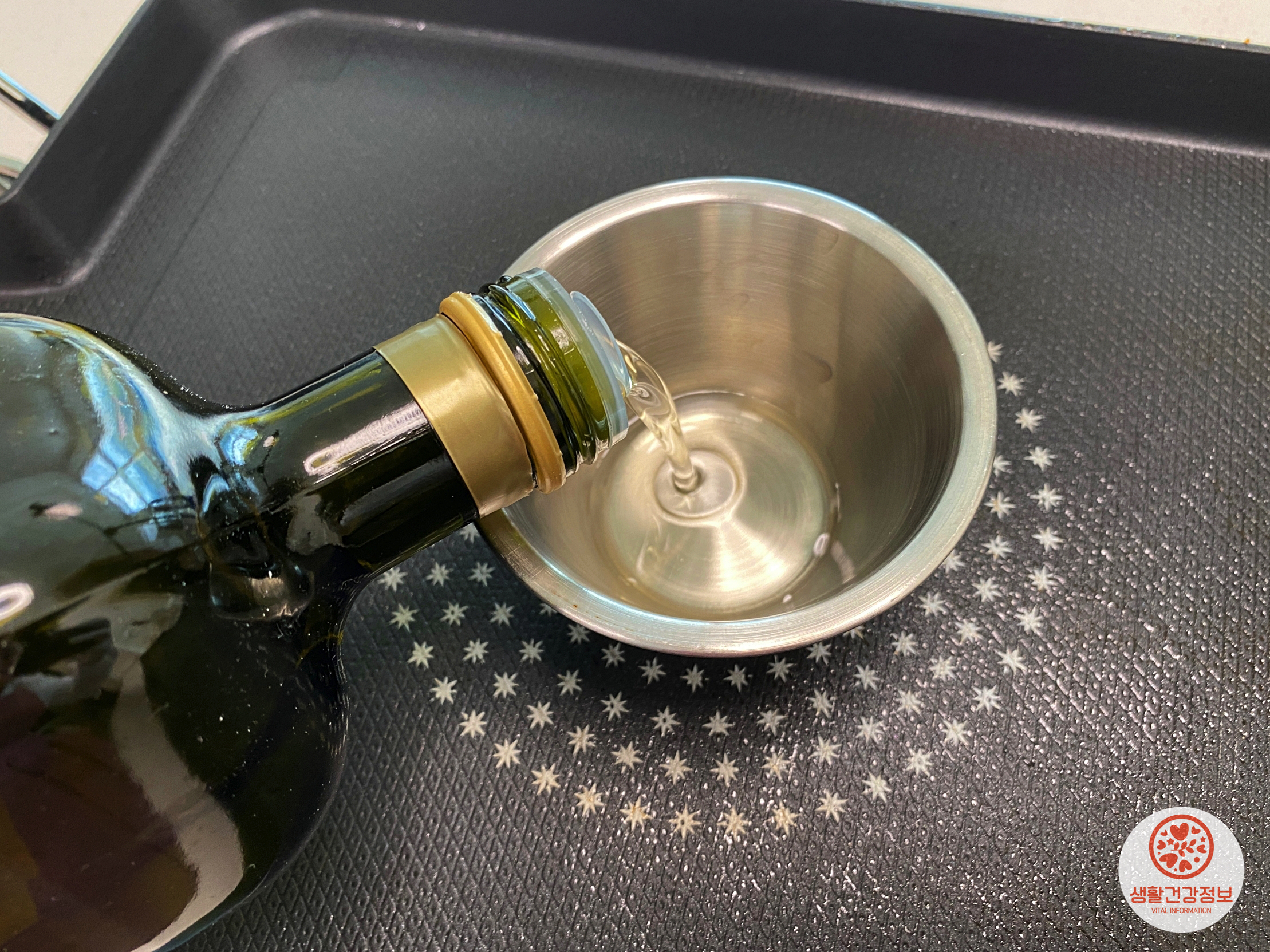 프라이팬에 기름을 그냥 부으면 안돼요.