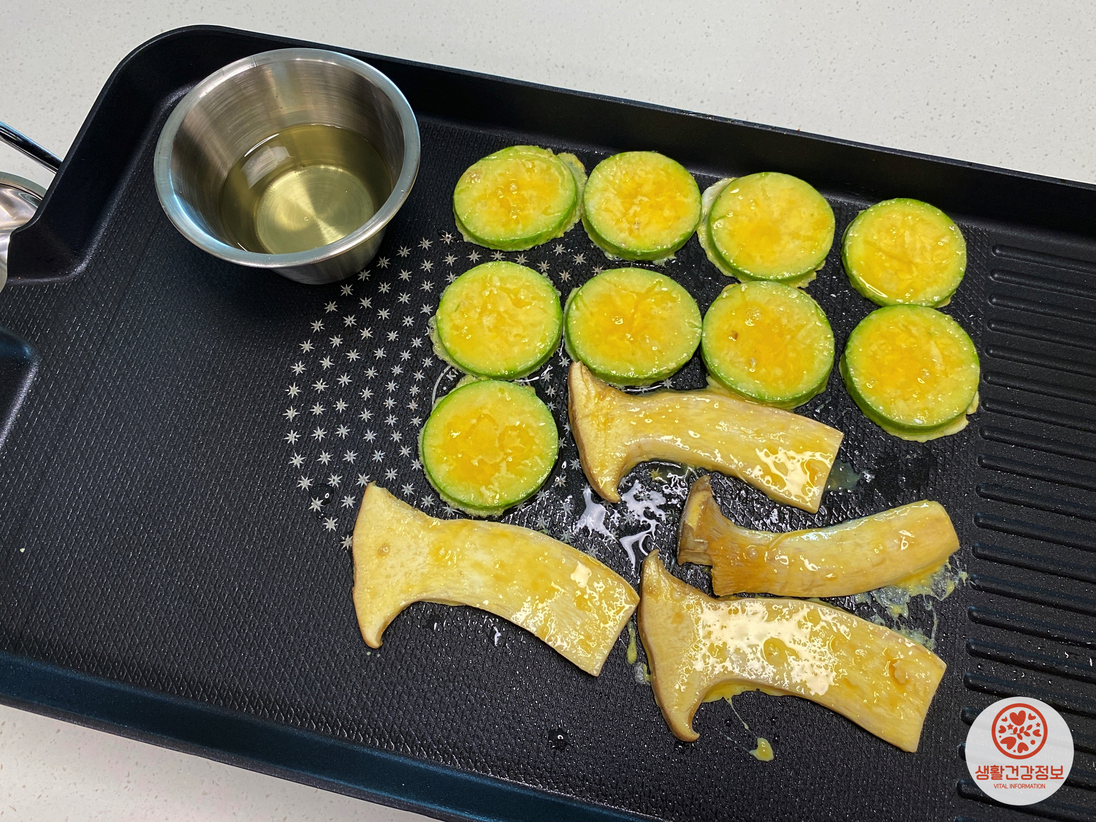 프라이팬 위에 기름종지를 올려보세요.