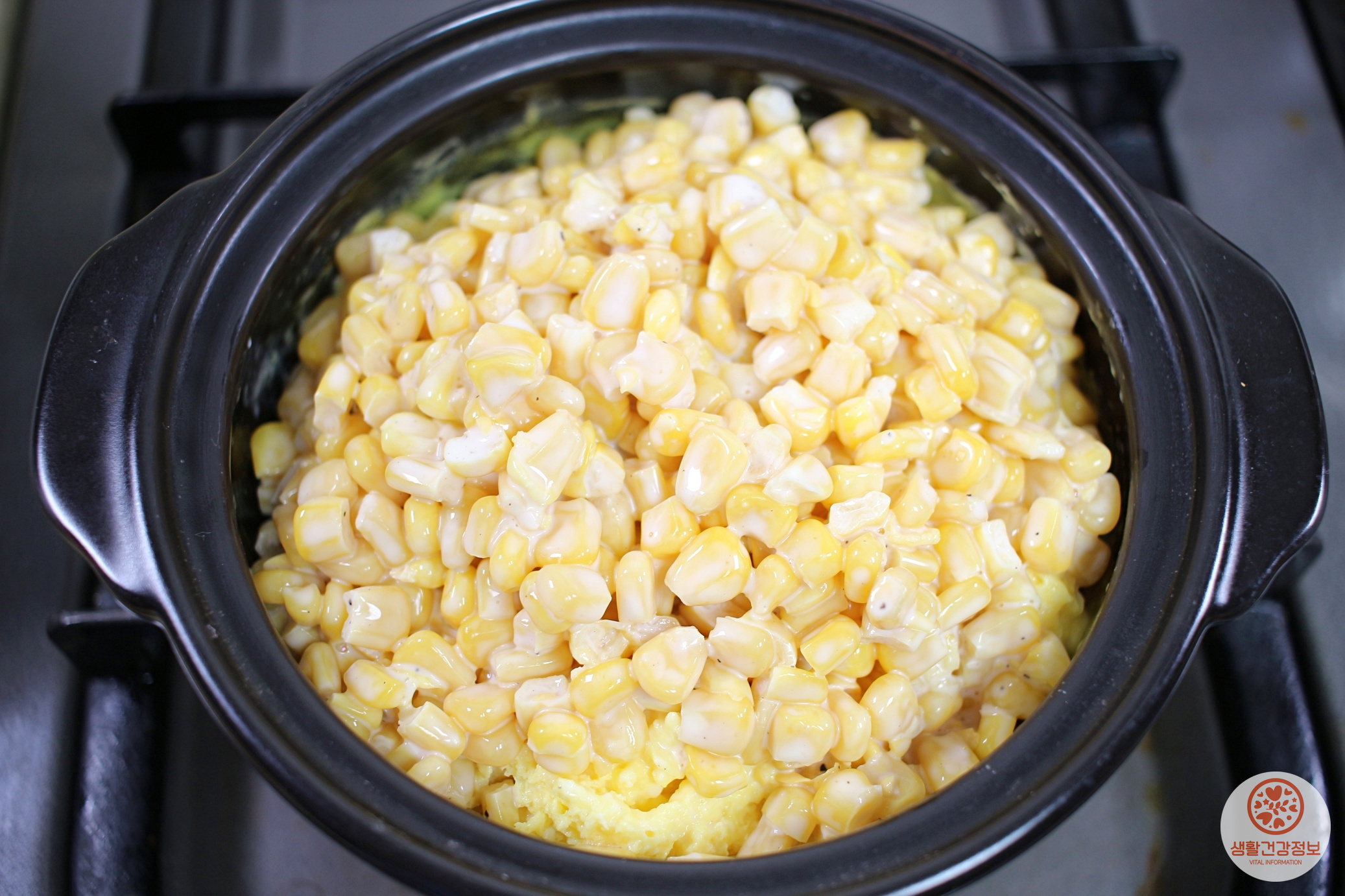 그다음 계란찜 위에 옥수수를 올려주시고요.