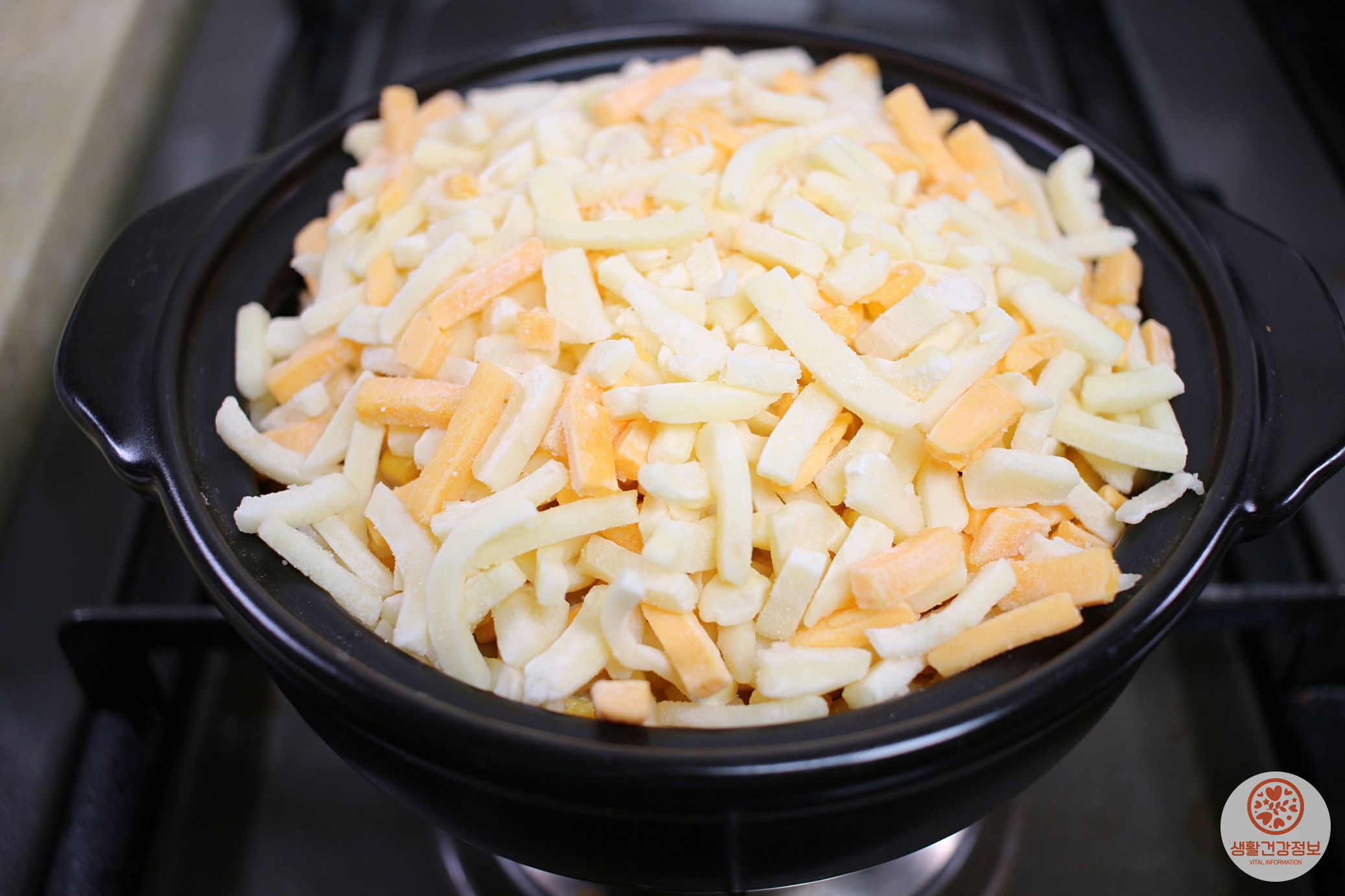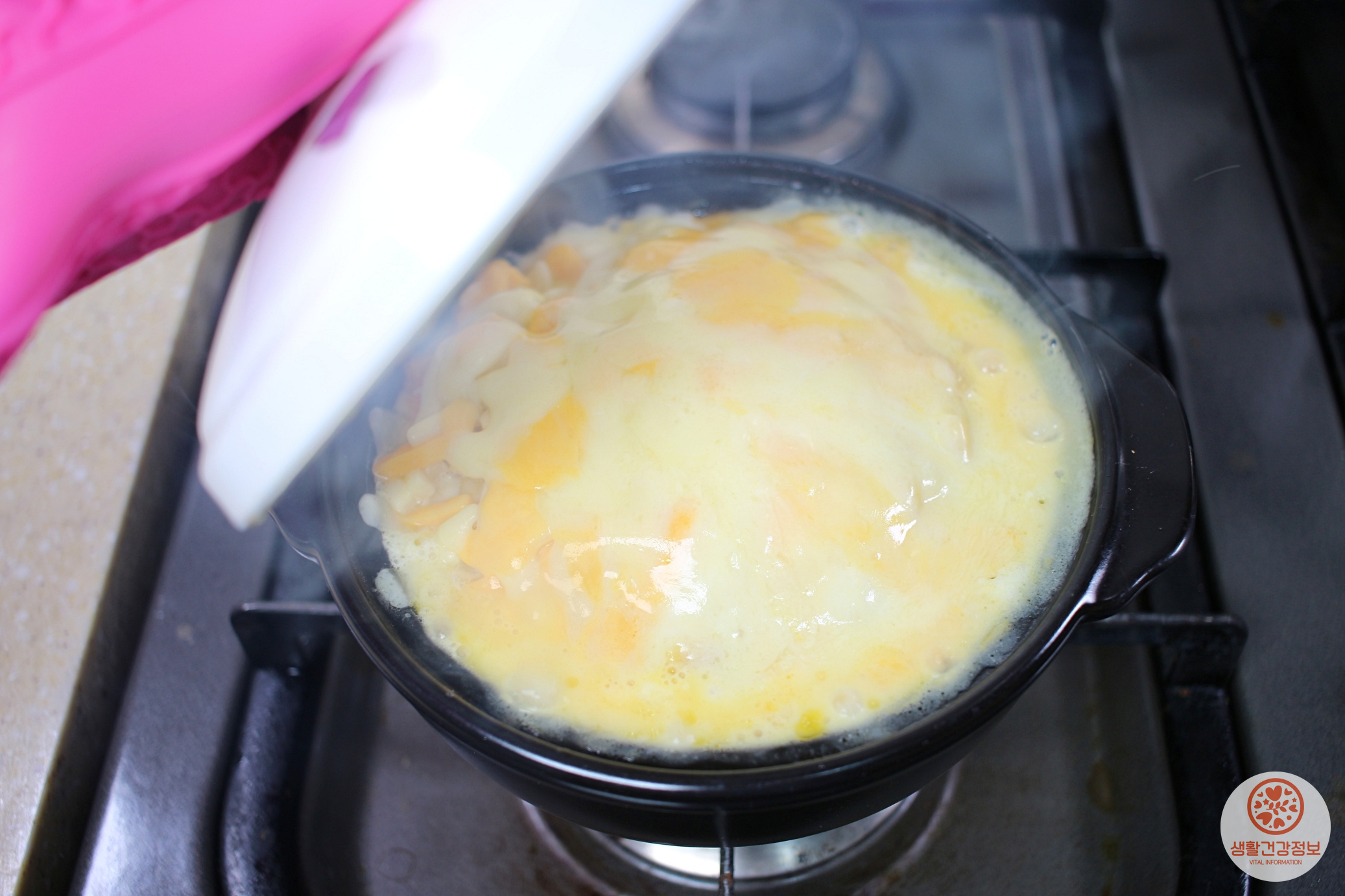 뚝배기 뚜껑을 닫고 치즈가 녹을 때까지