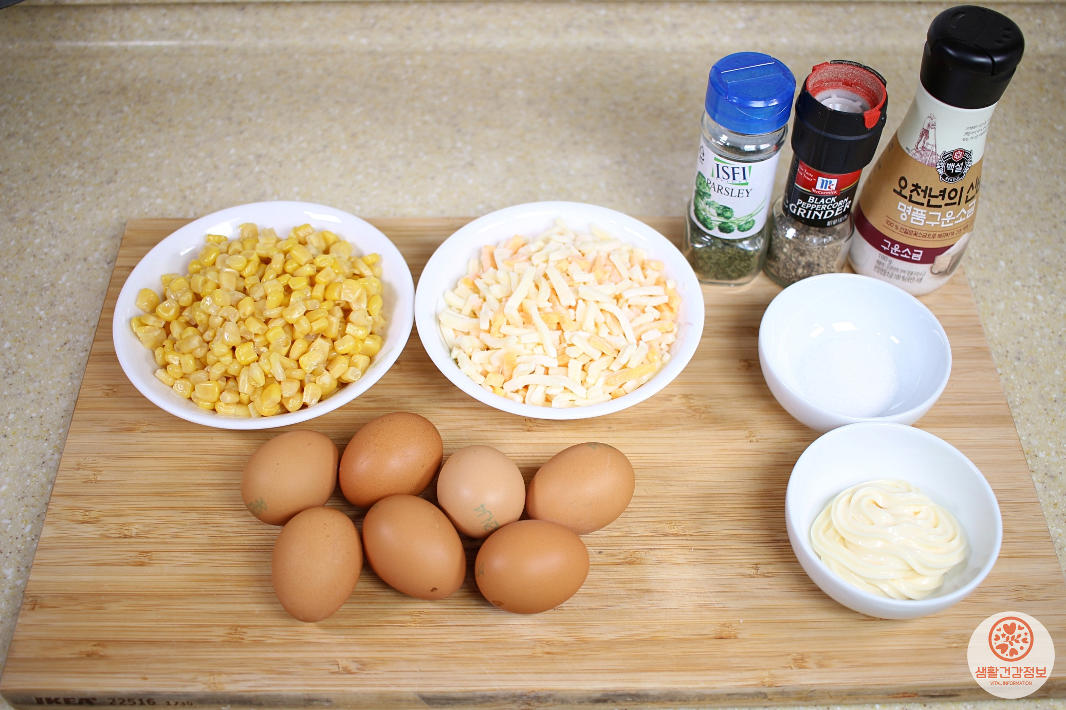 계란, 캔옥수수, 모짜렐라치즈,