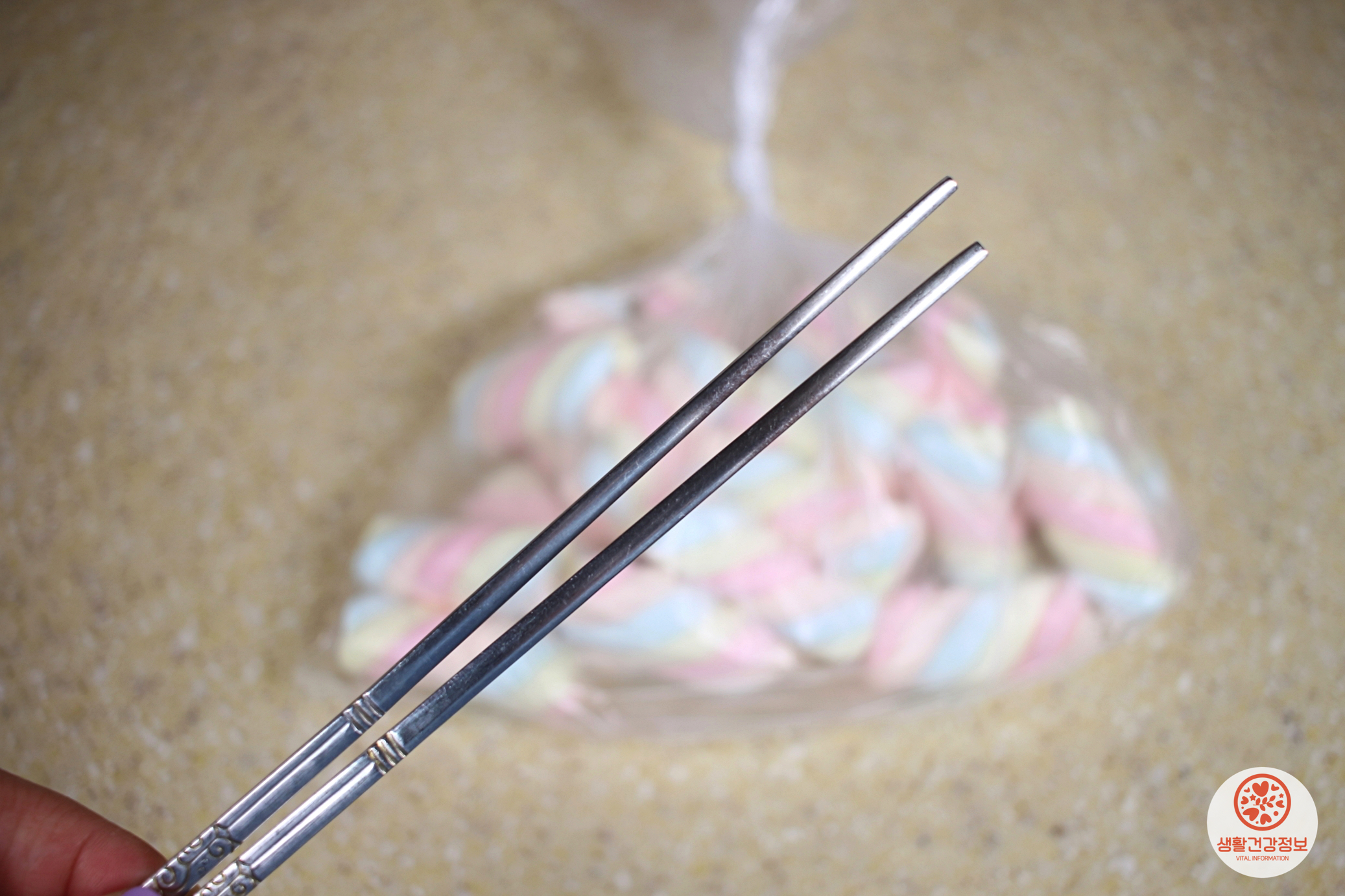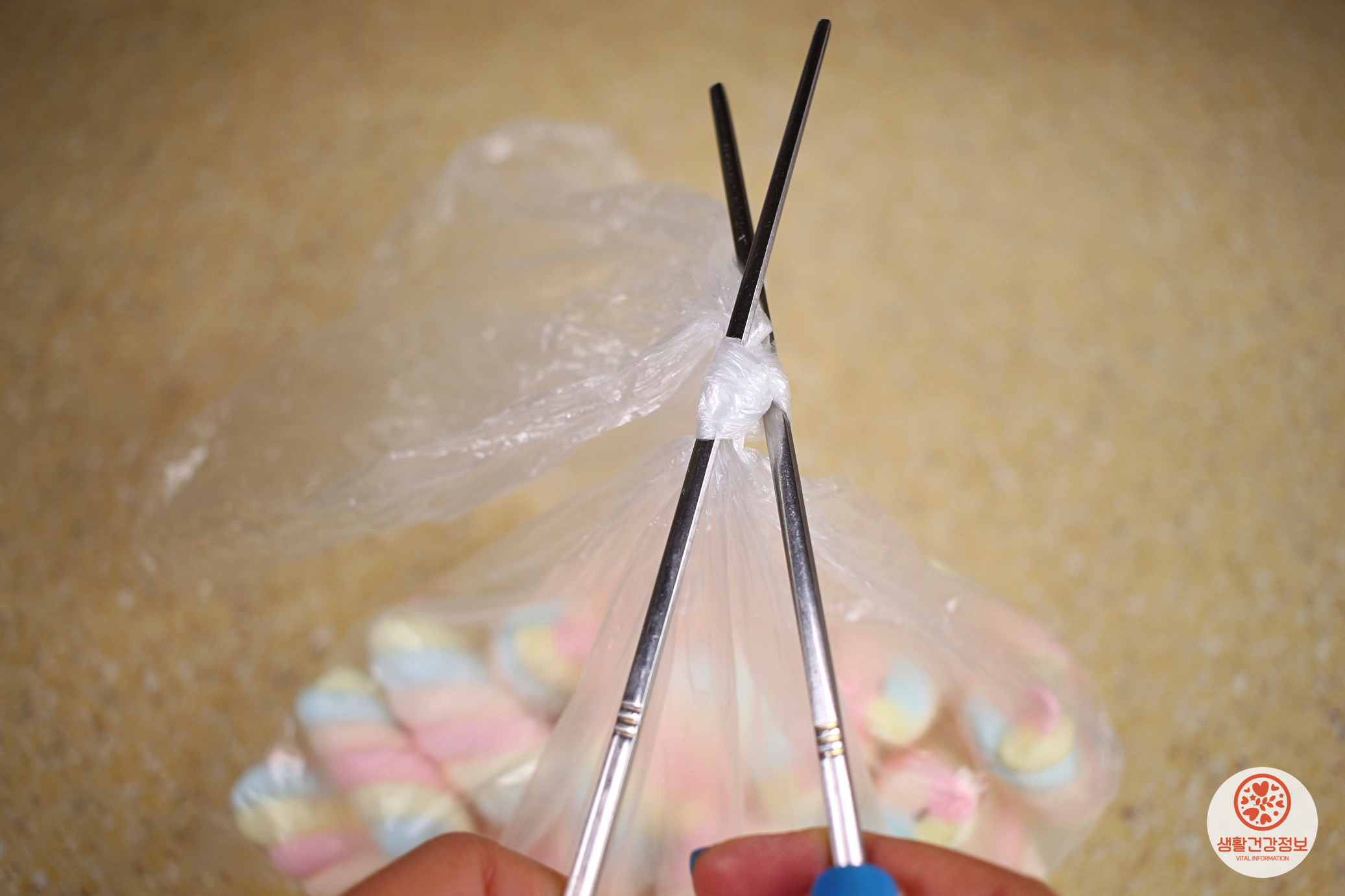 4. 비닐봉지 매듭에 젓가락 끼우기