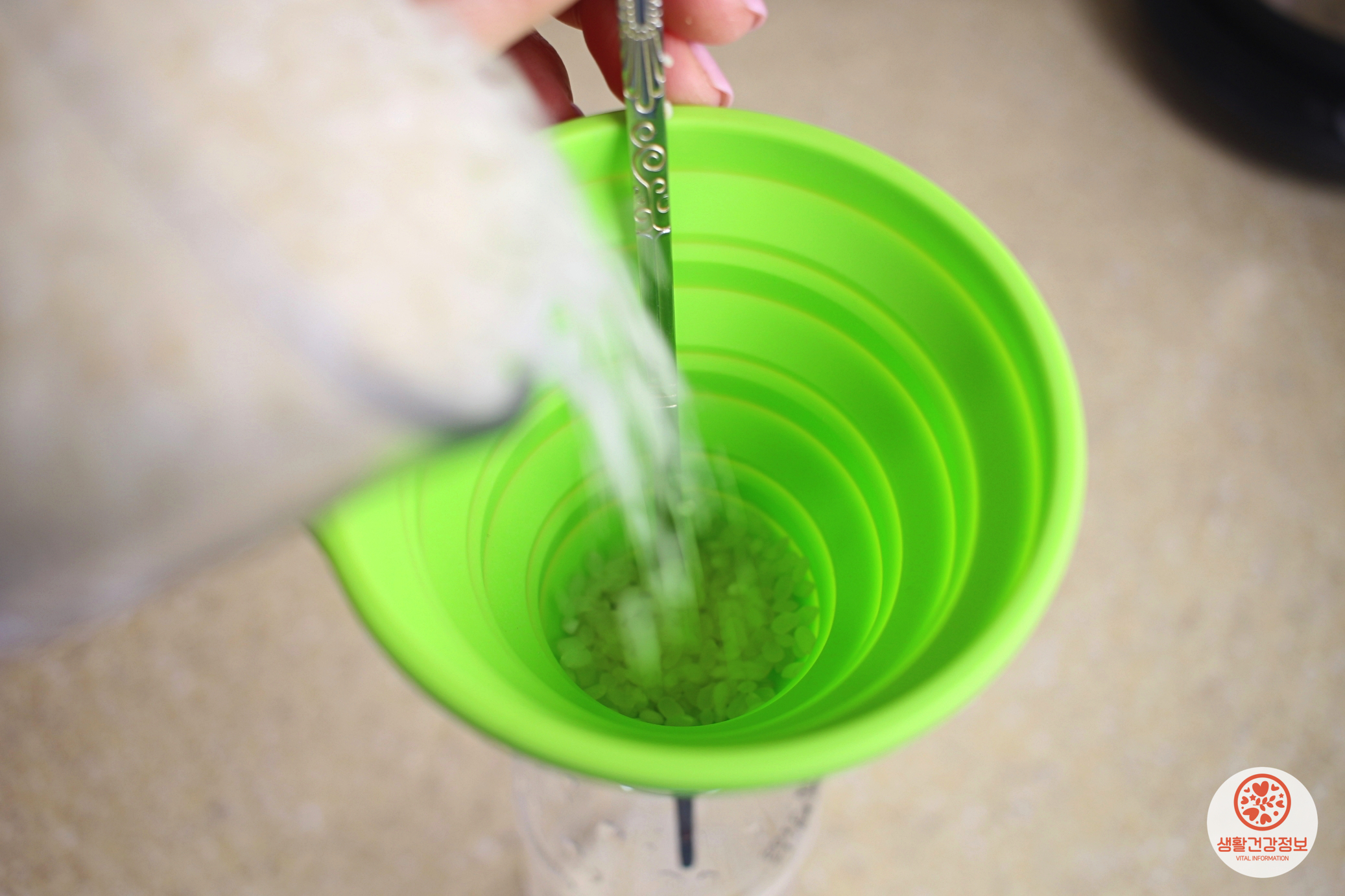 좁은 입구에 내용물이 한꺼번에 쏠리지 않게 해주고요.