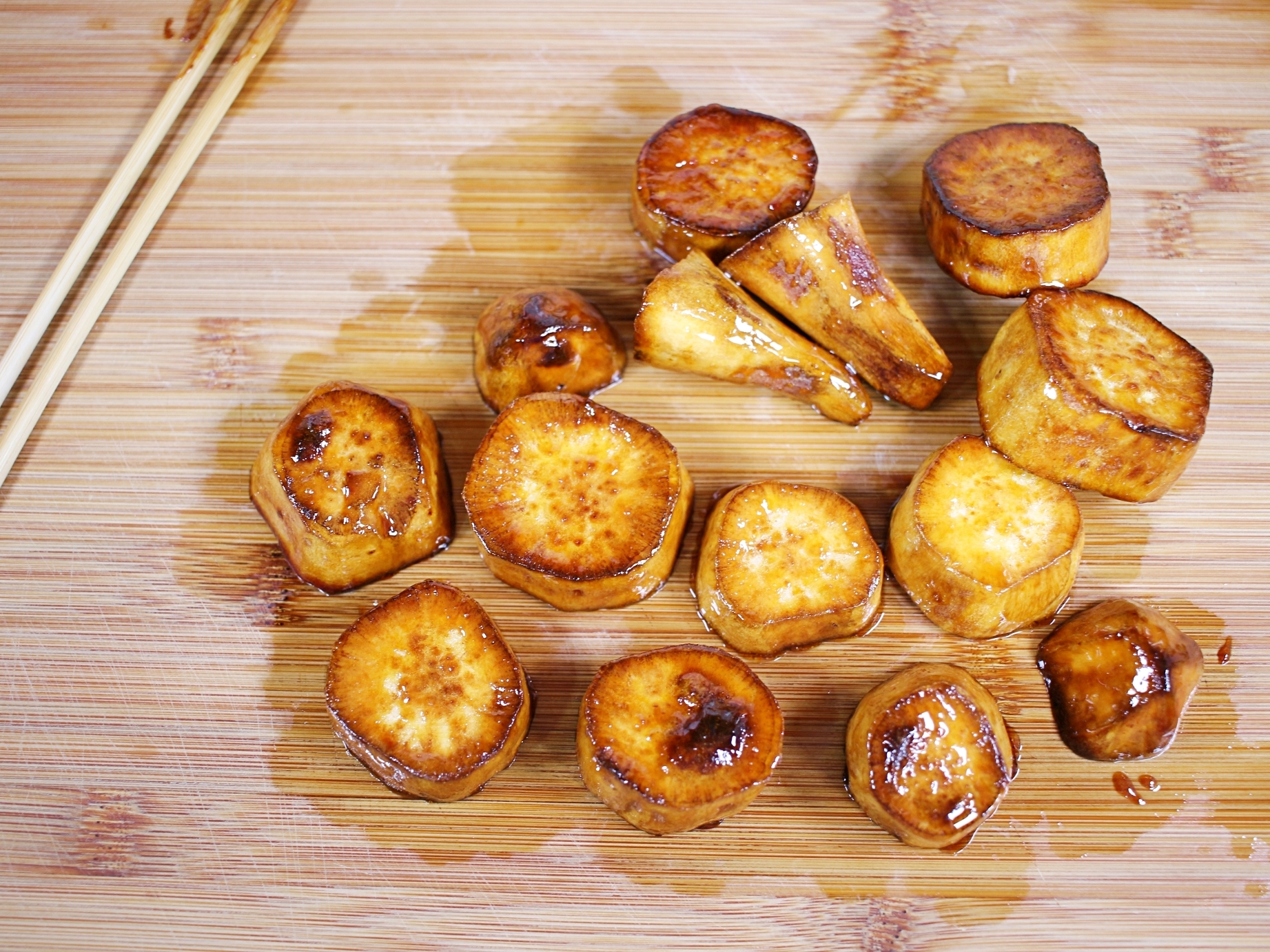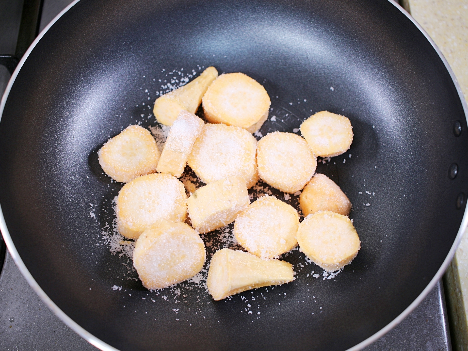 고구마 겉면의 설탕이 자연스럽게 녹으며 완벽하게 코팅돼요.
