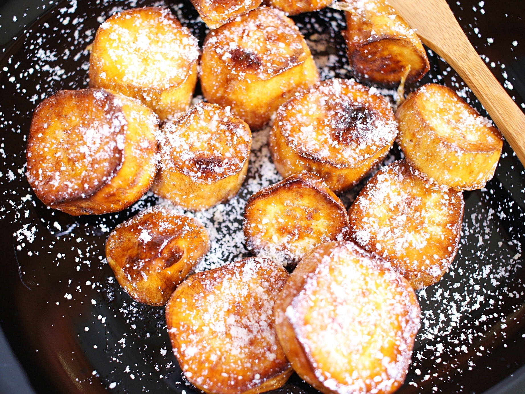 고구마 겉면의 설탕이 자연스럽게 녹으며 완벽하게 코팅돼요.