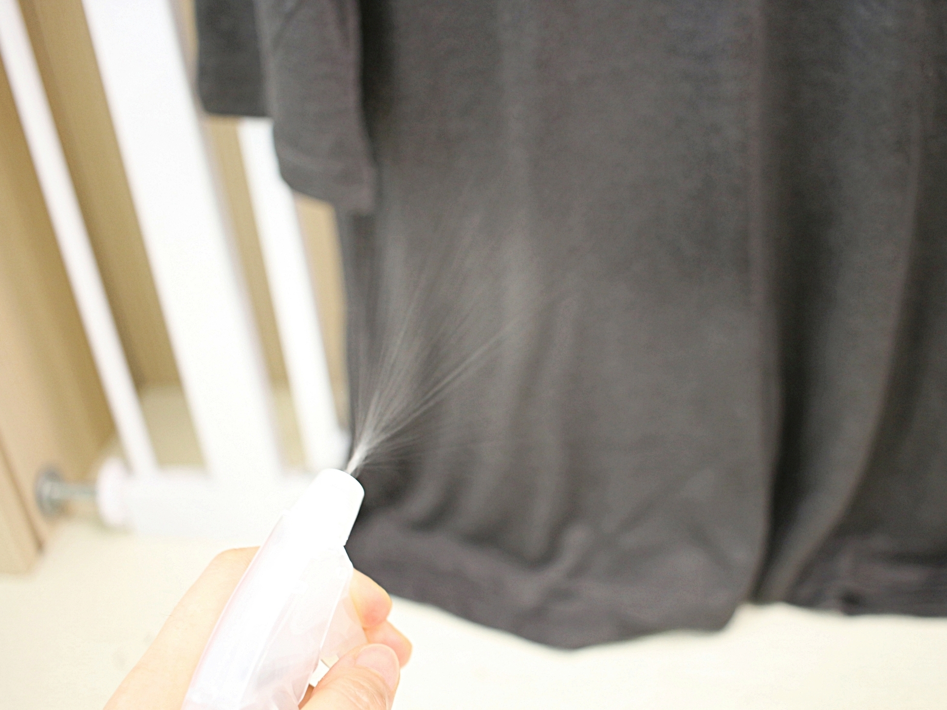 옷의 주름진 부분에 물을 뿌리고