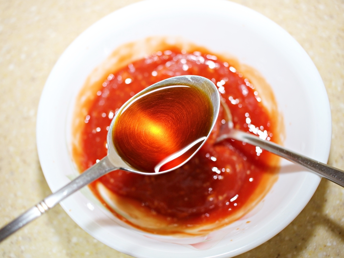 고추기름을 넣었는데도 케첩 비중이 크다보니