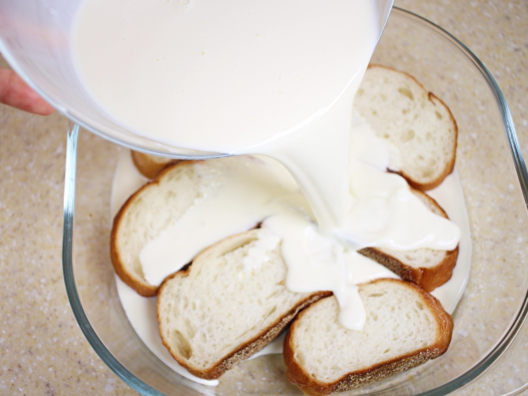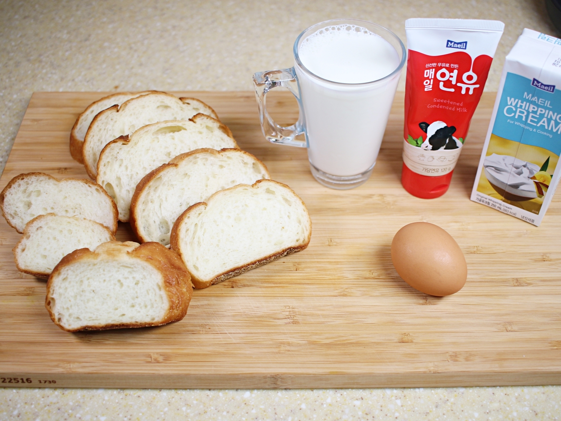 재료는 바게트빵, 우유, 연유, 생크림, 달걀 준비해 주세요.