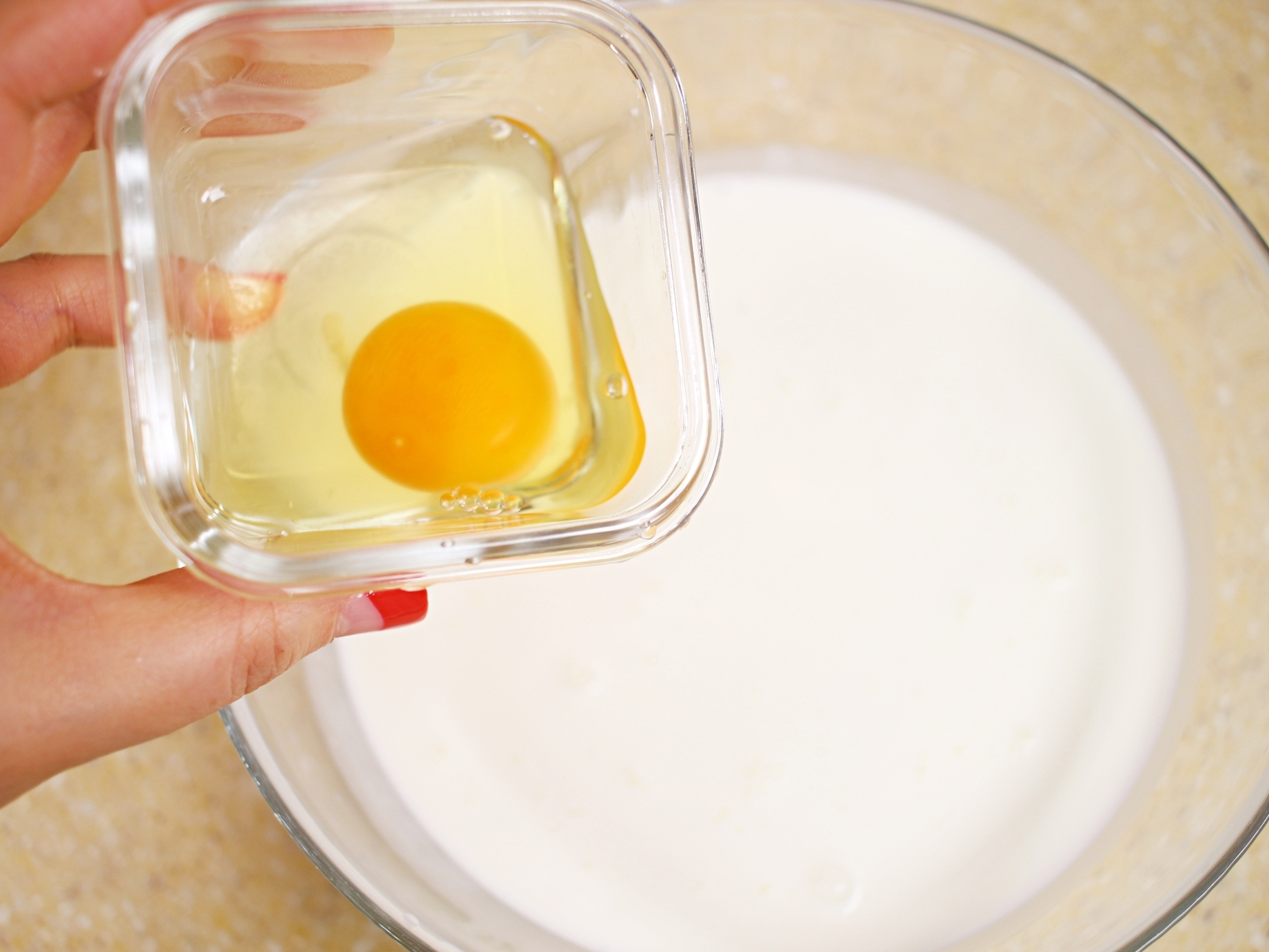 우유, 생크림, 연유를 1:1:0.5 비율로 섞어주세요.