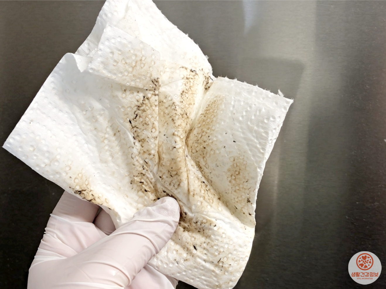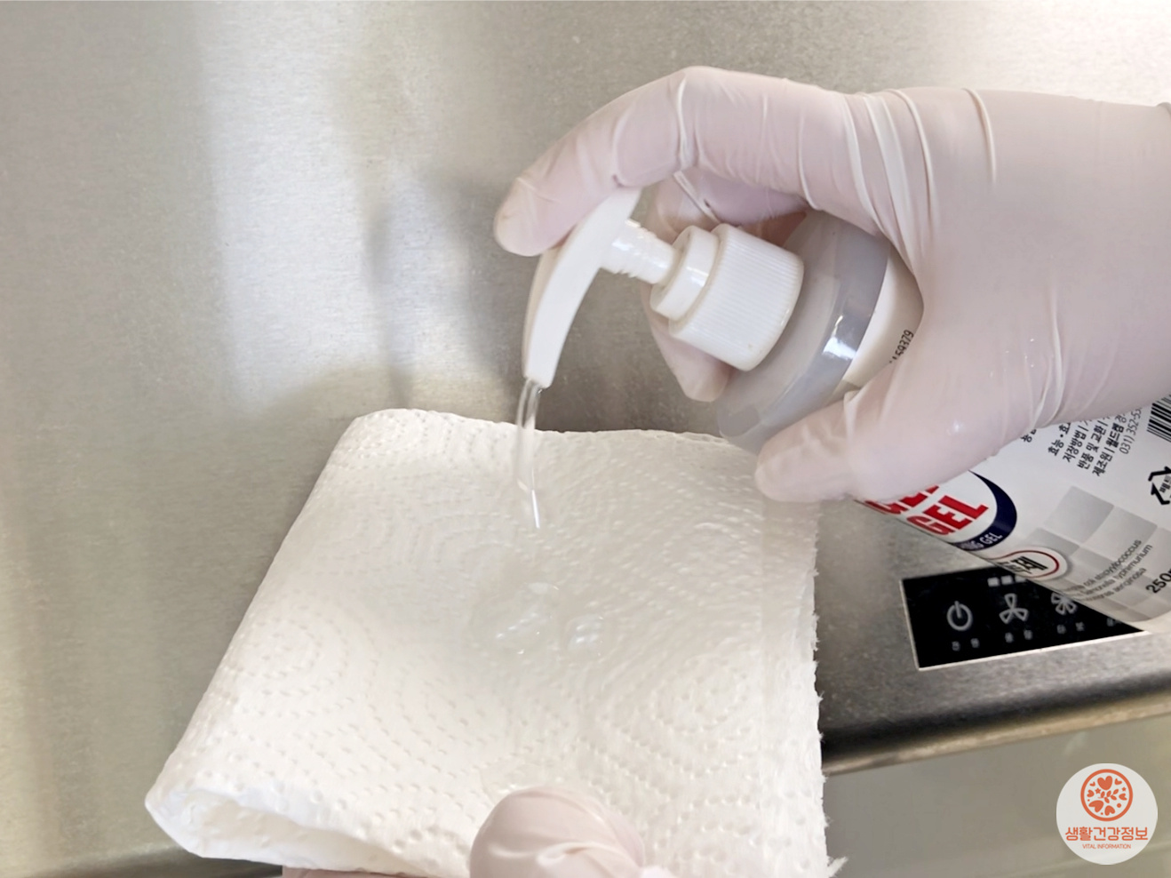 키친타월이나 헝겊에 손소독제를 묻혀서 닦아보세요.