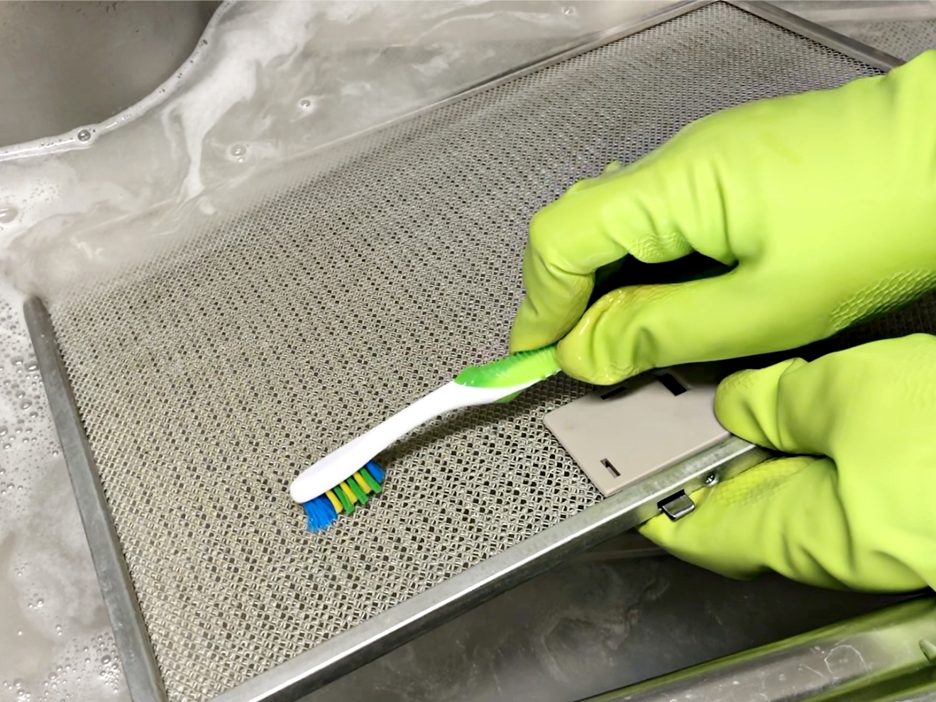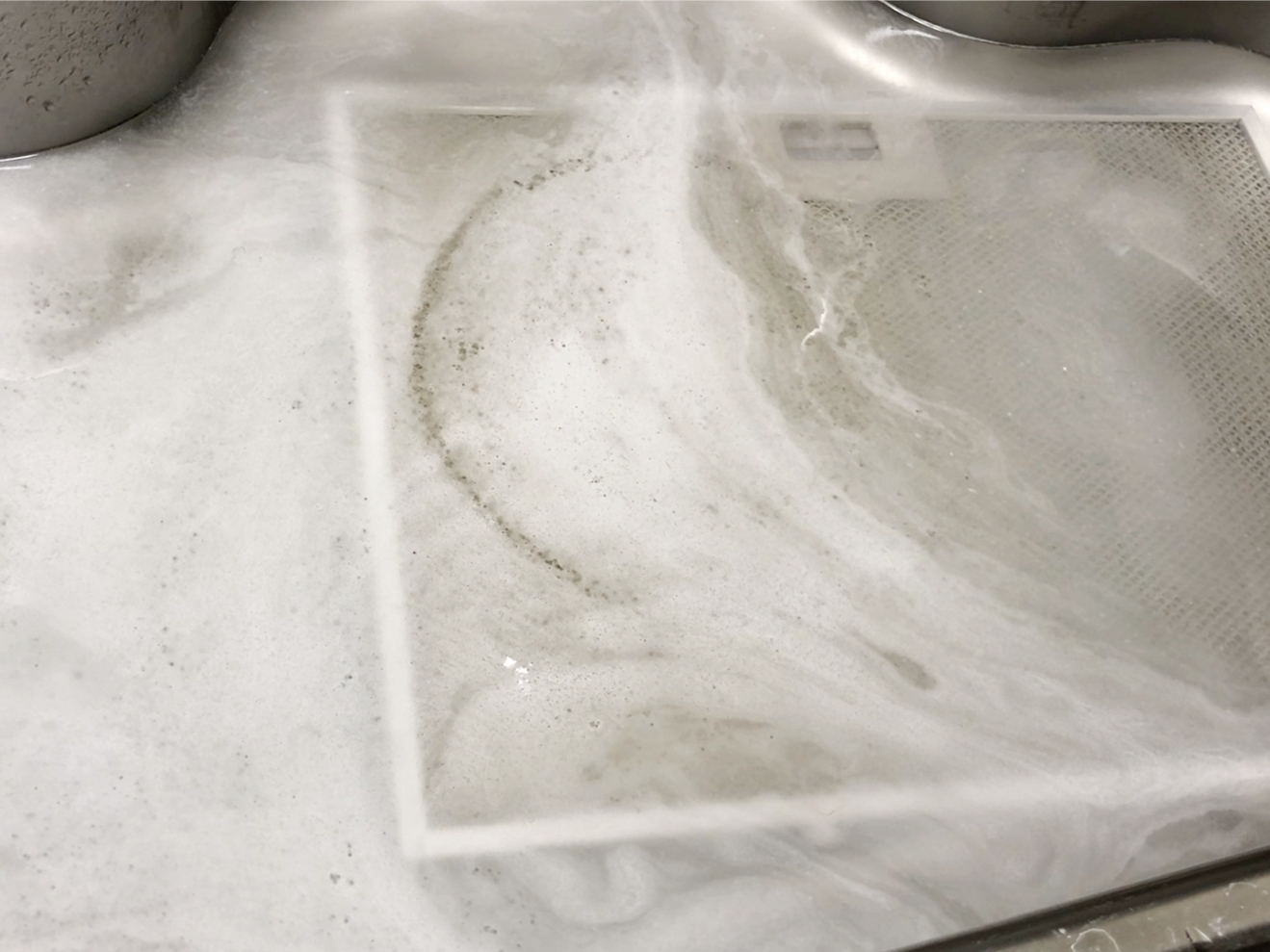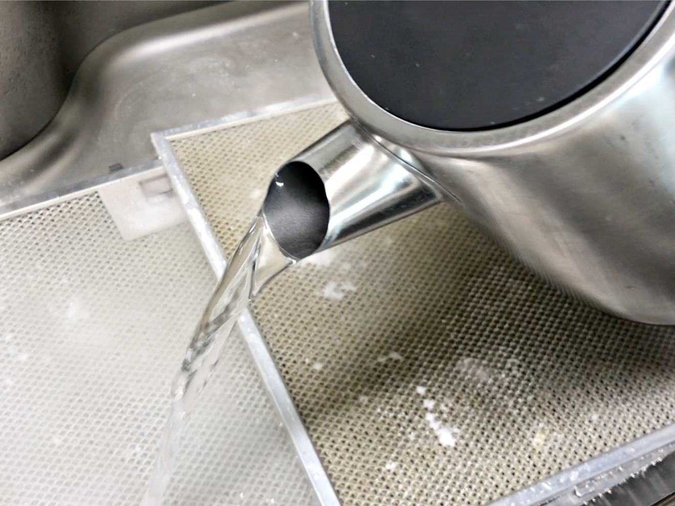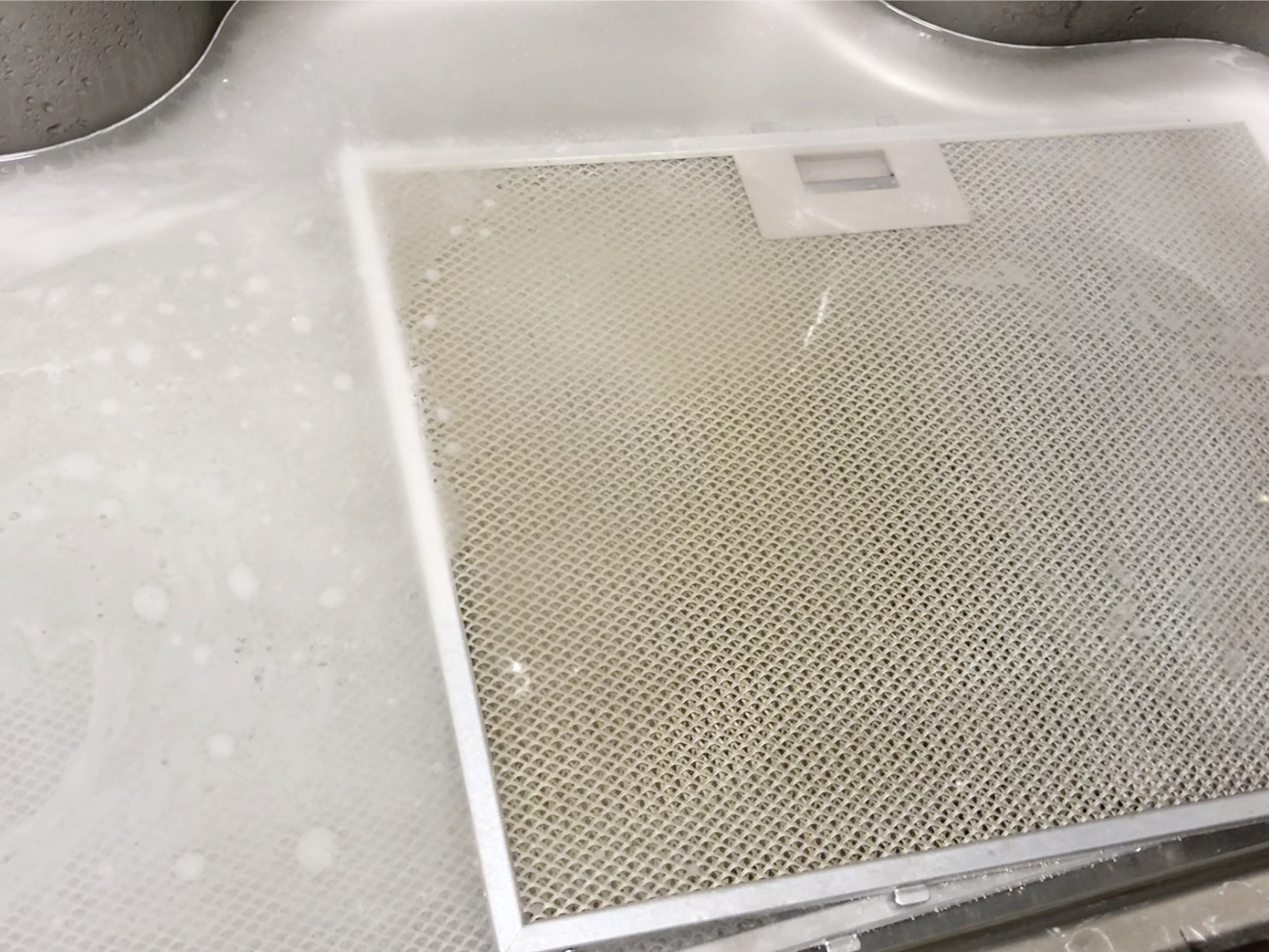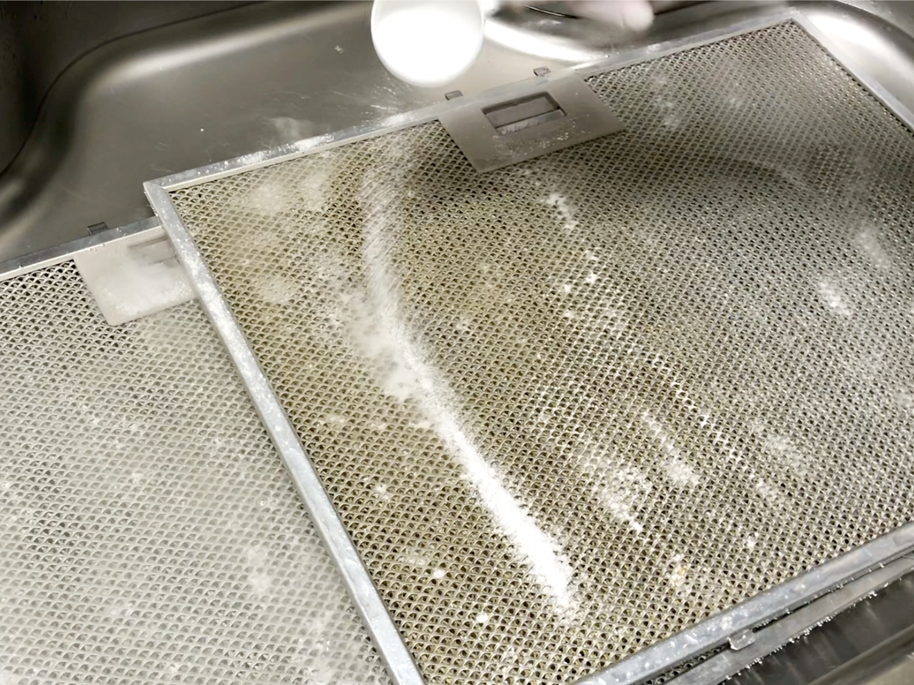 필터를 주방후드에서 빼낸 뒤 싱크대 안에 넣어주세요.