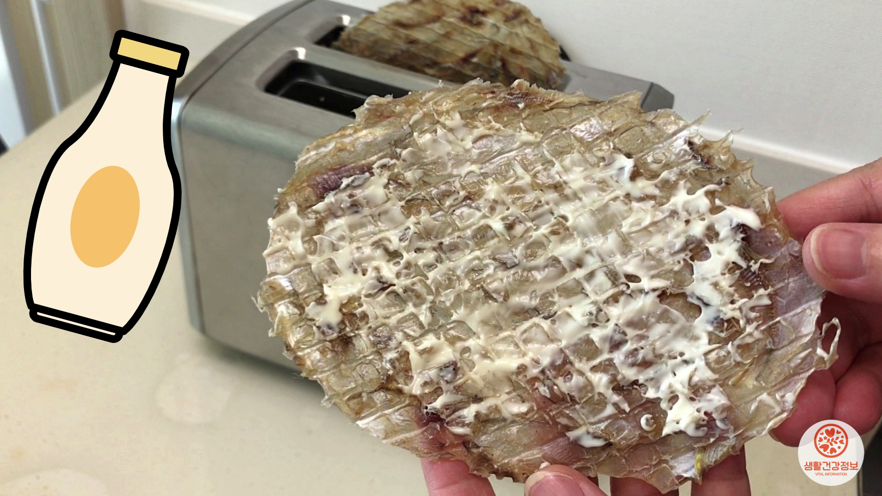 쥐포 한쪽면에 마요네즈를 발라서 구우면