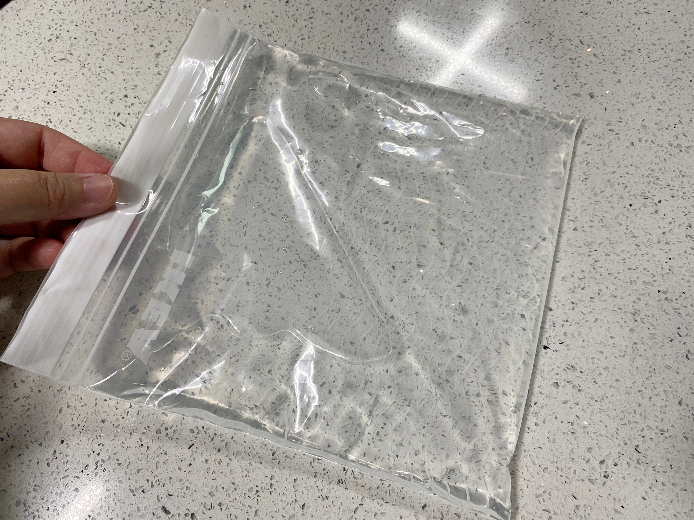 지퍼백에 물을 반쯤 채워주세요.