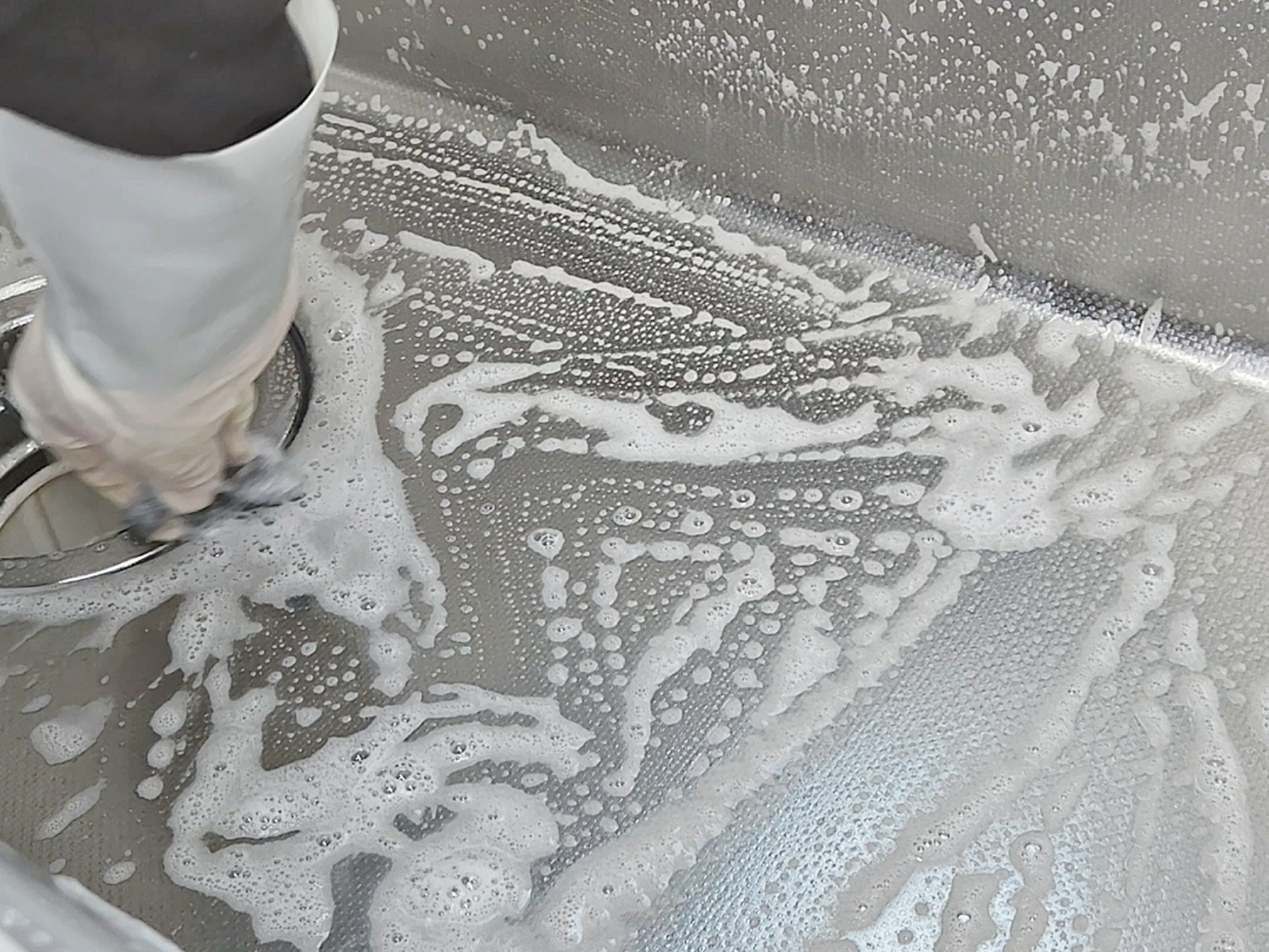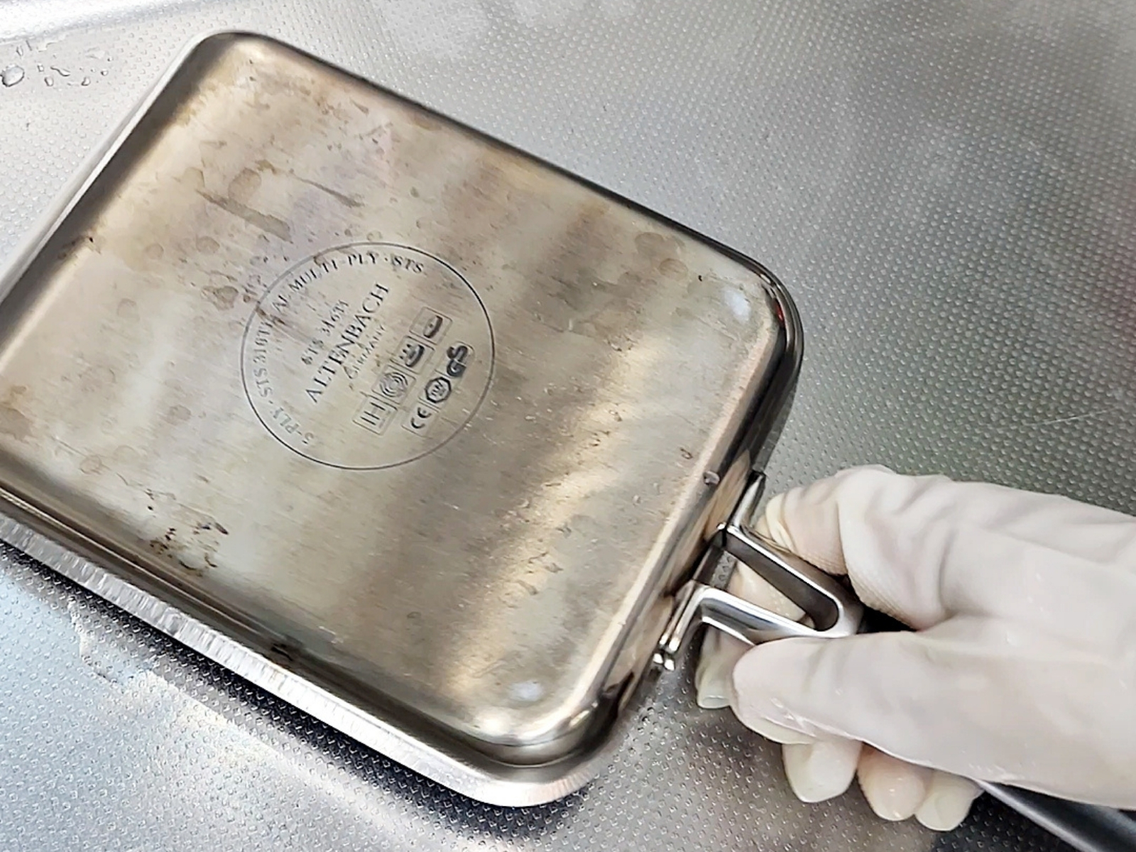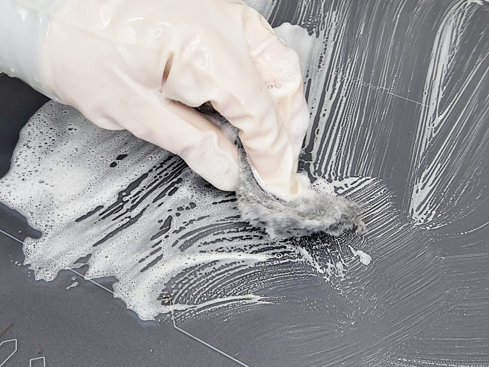 스크래퍼로 긁어내는 과정 없이도 깨끗하게 닦여요.