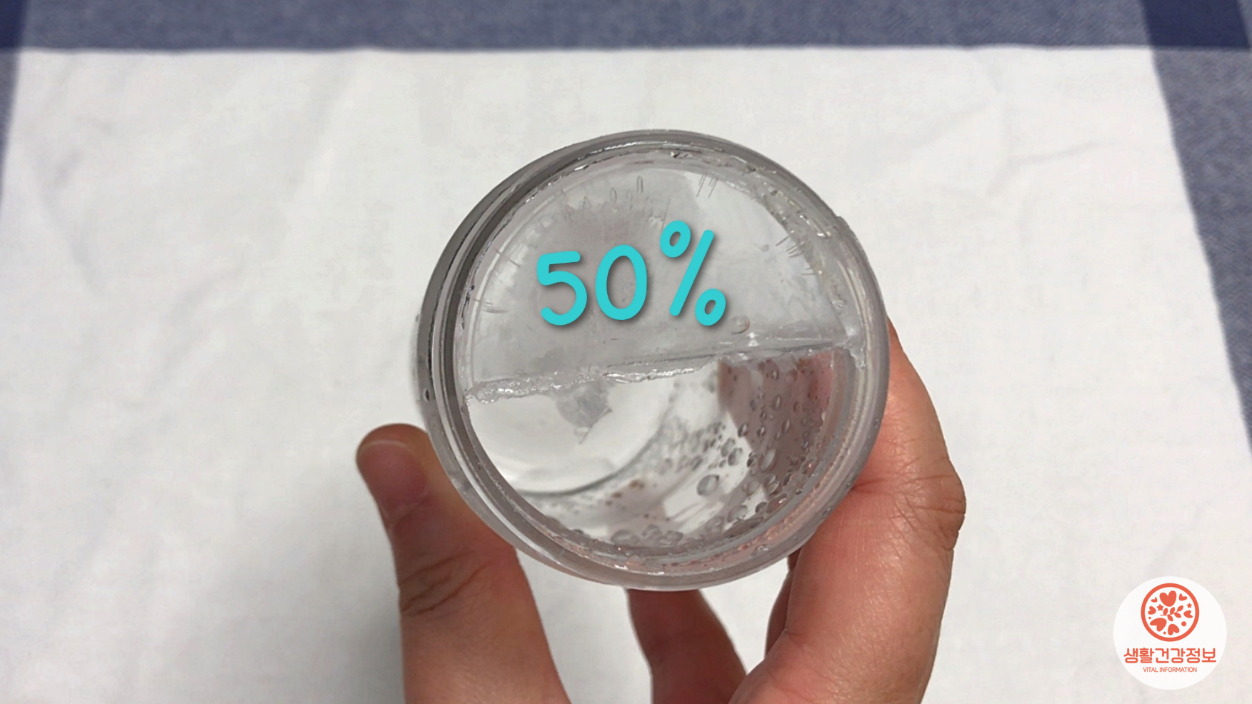 정확하게 물통 속 1/2만 얼음이 얼었죠.