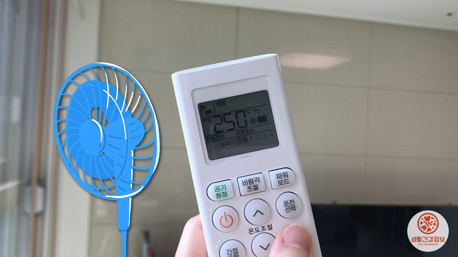 또, 에어컨과 마주보게 선풍기를 틀어주면
