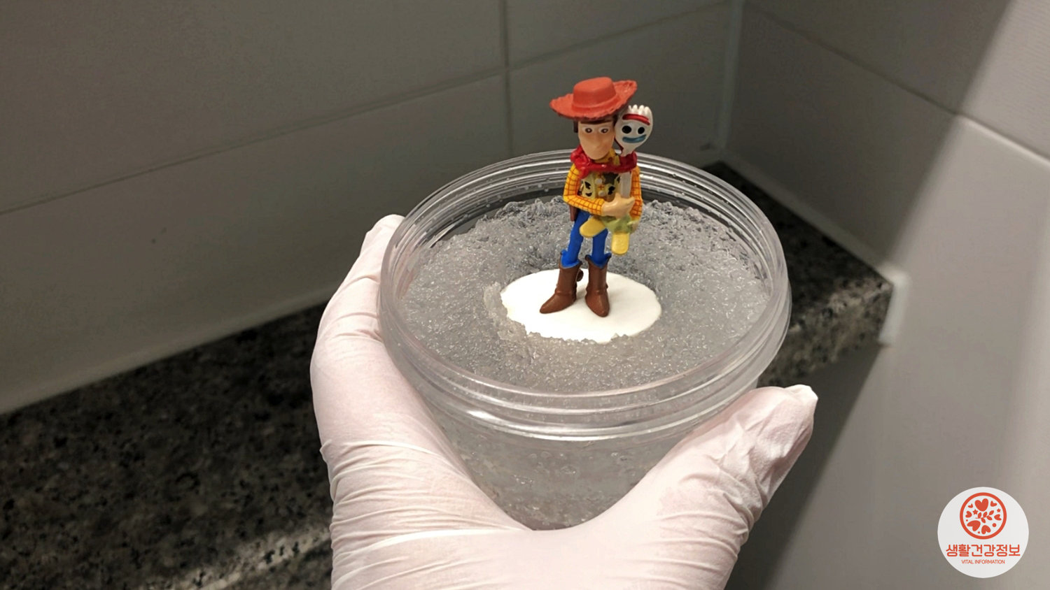 용기에 고흡수성 폴리머를 담고
