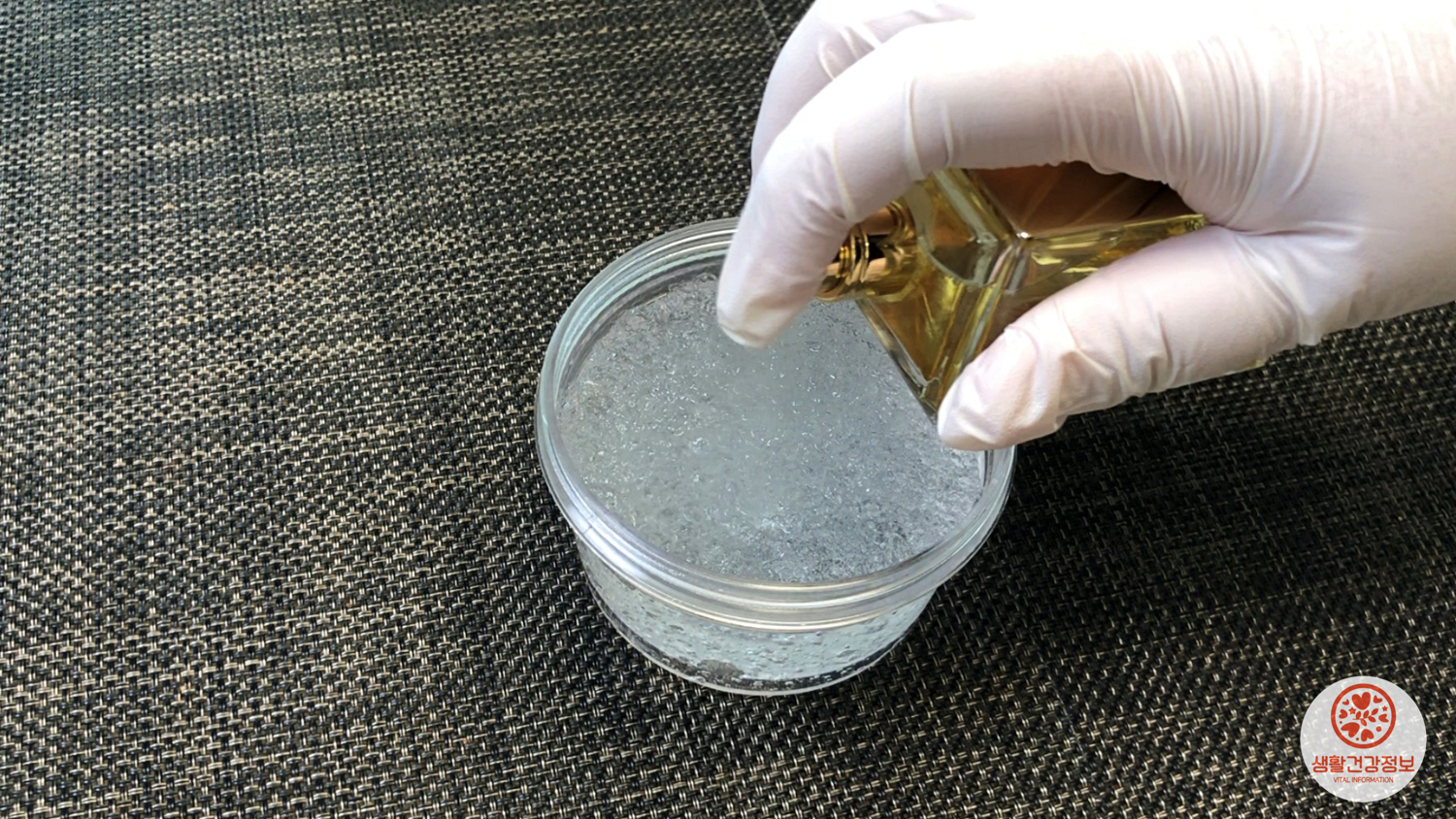 화분의 흙 위에 아이스팩 속 폴리머를 올리고