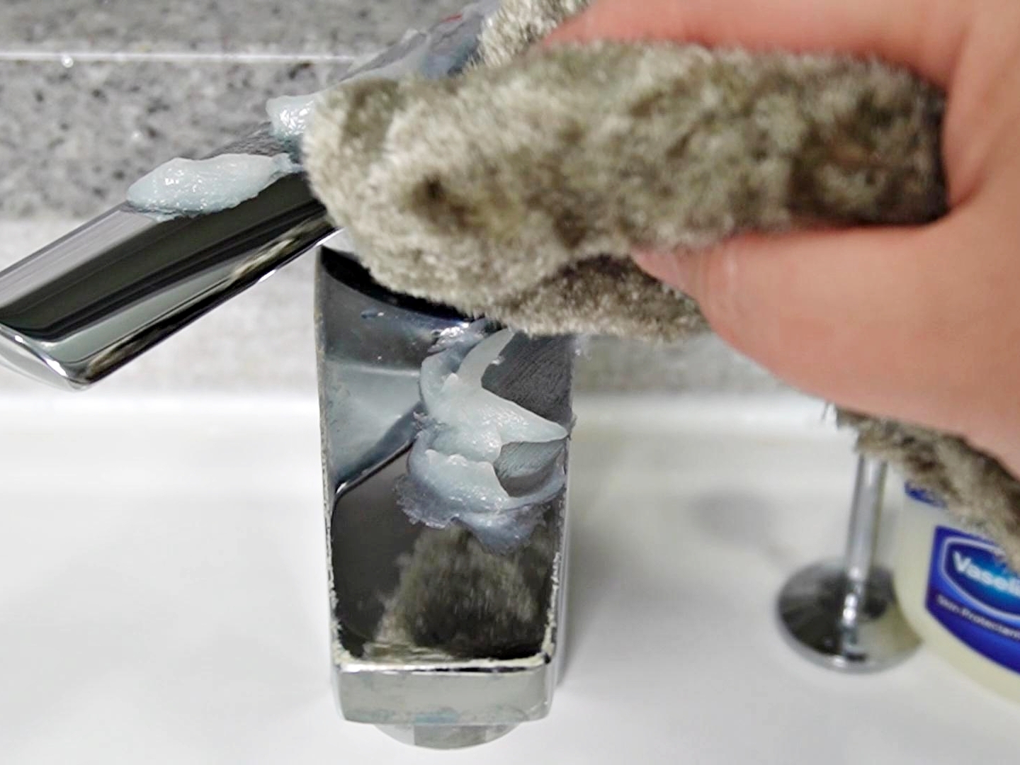 바세린을 소량 덜어 수도꼭지 표면을 따라 살살 펴 발라주세요.