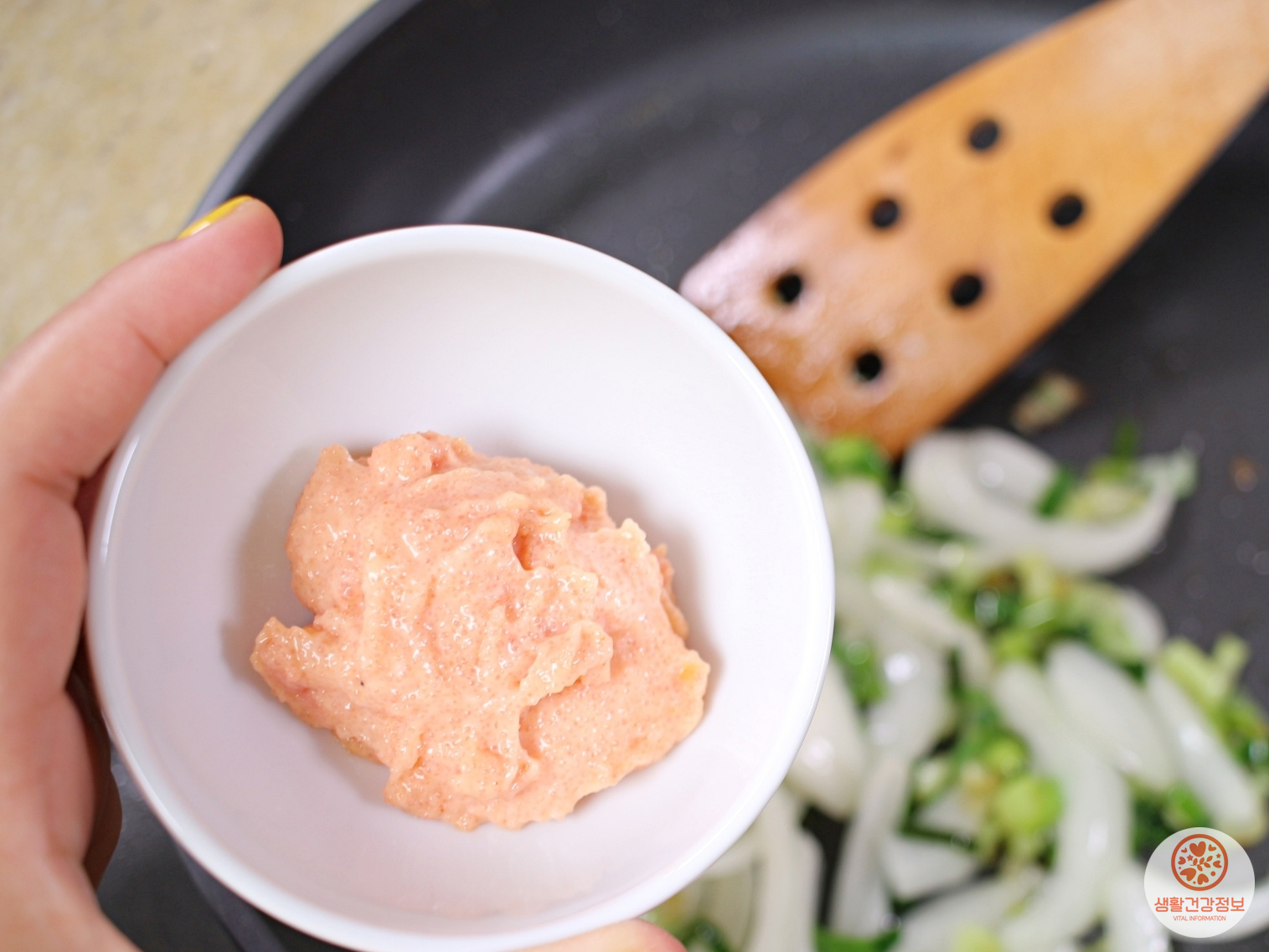 양파가 반정도 익었을 때 명란마요 넣어주시고요.