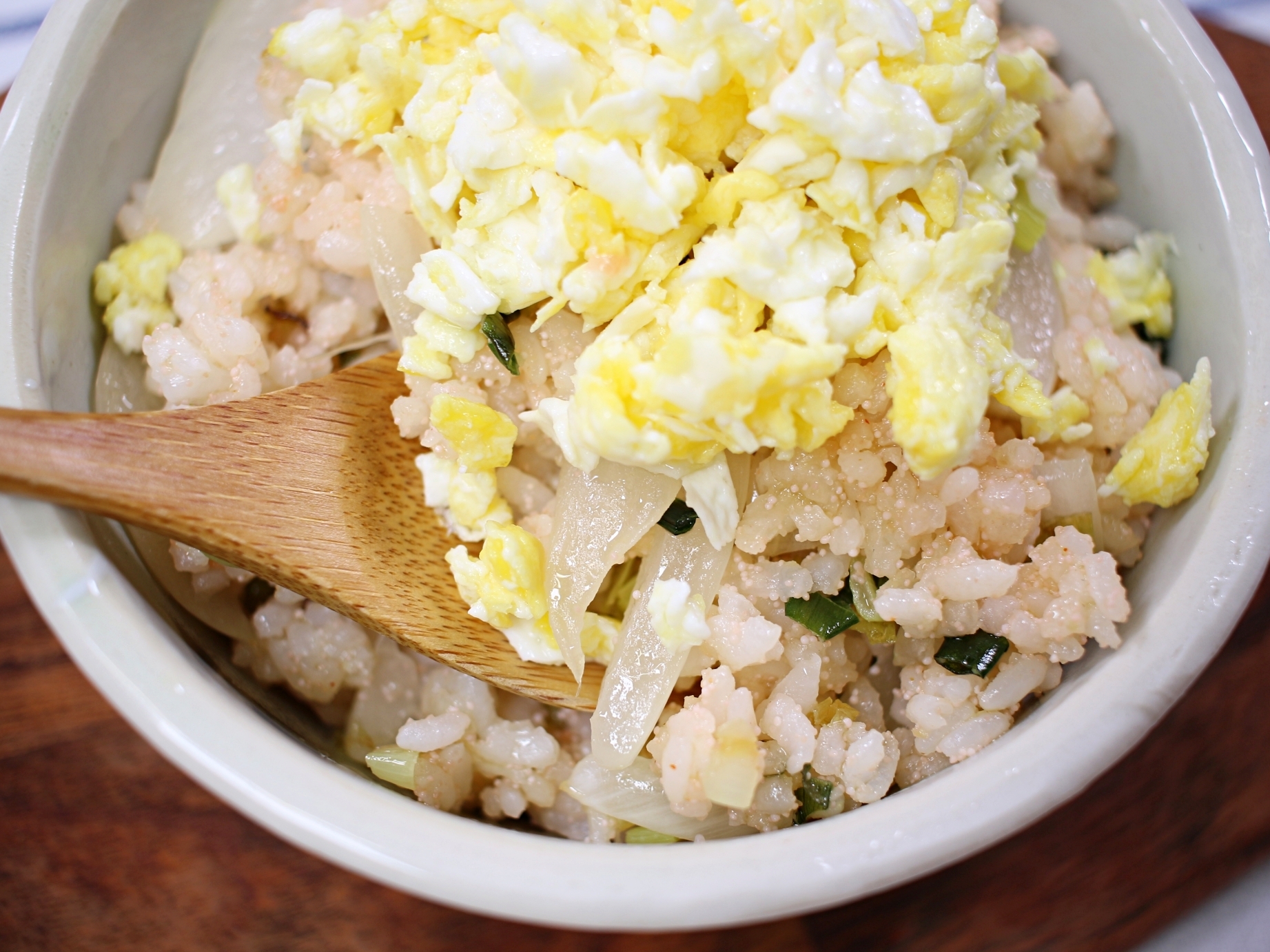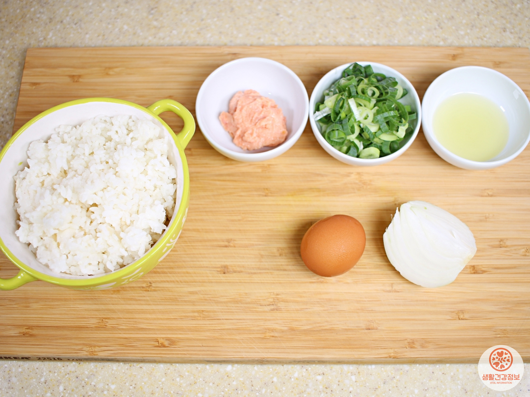 재료는 명란젓, 마요네즈, 찬밥, 달걀, 대파, 양파 준비했어요.