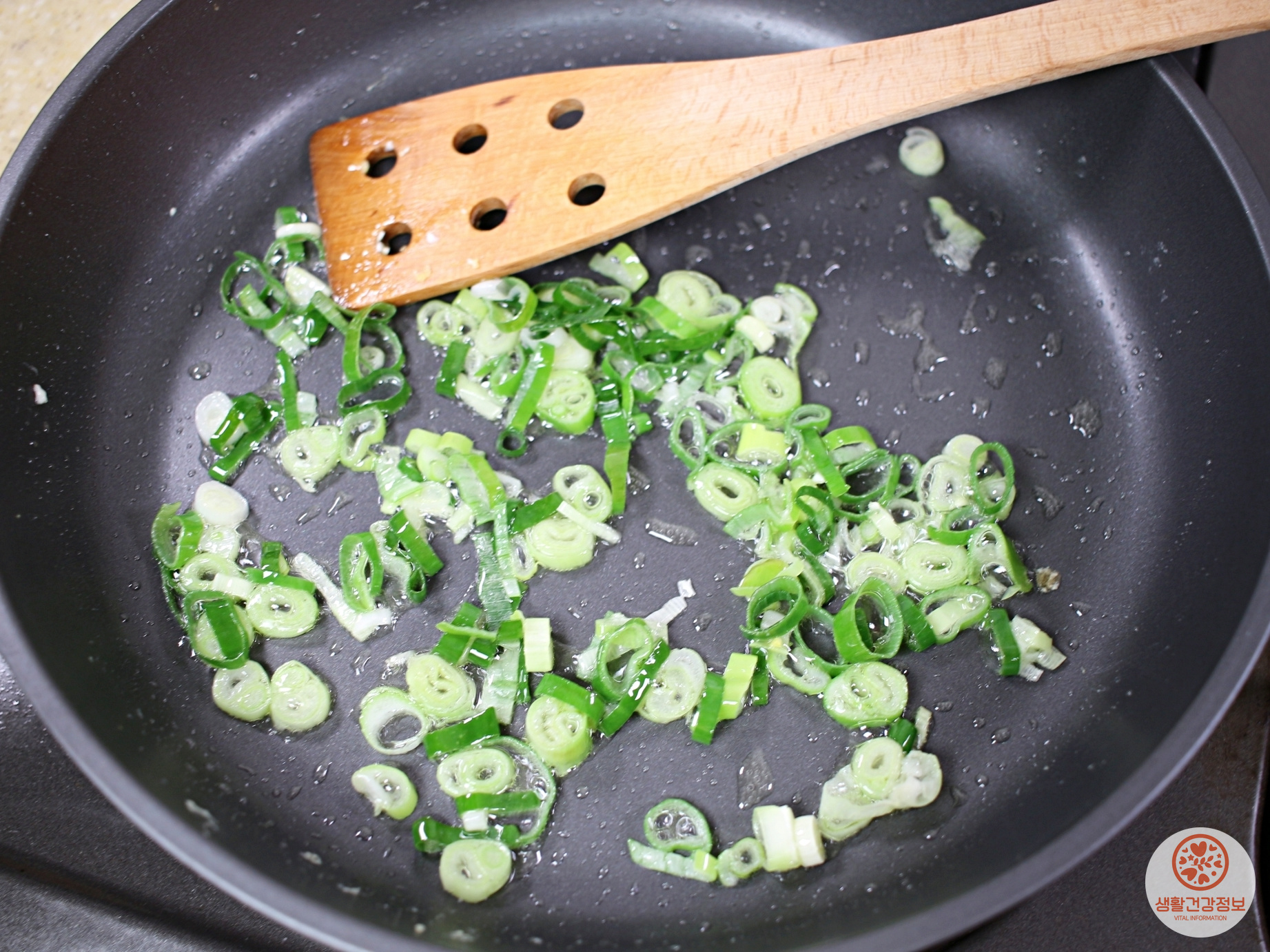 다시 기름 조금만 두르고 대파를 볶아서